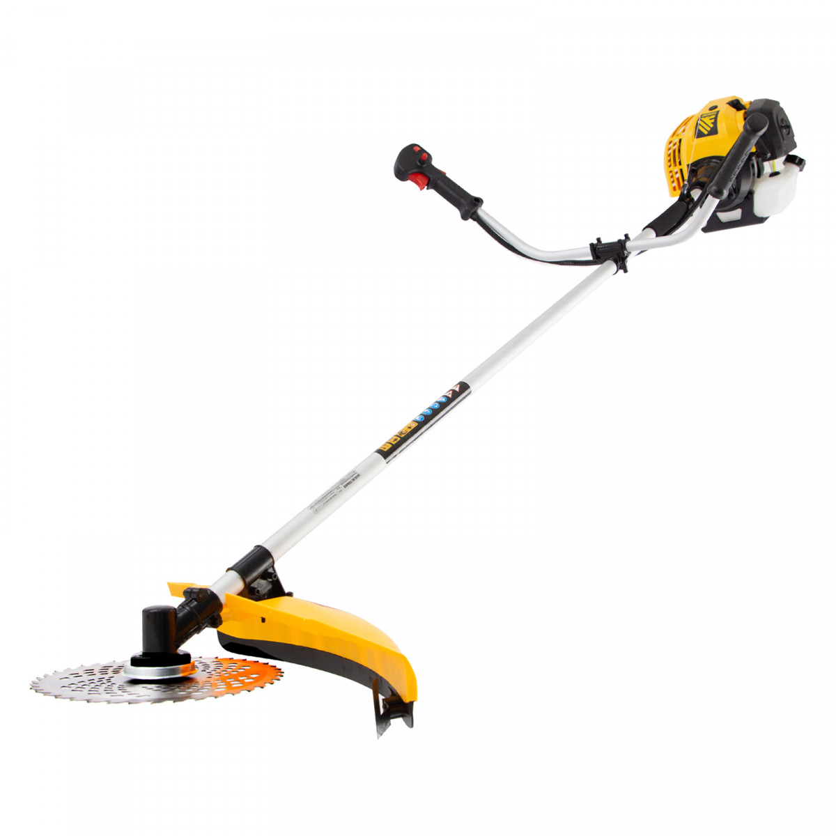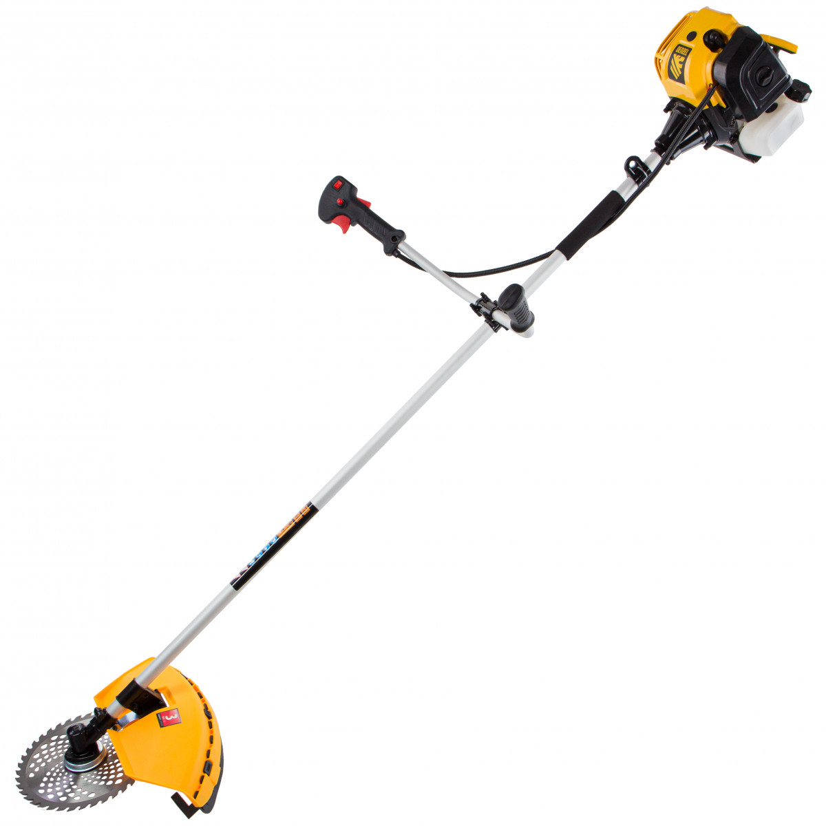 Бензиновый триммер Denzel DT-43 96224 оснащен экономичным, надежным и простым в эксплуатации двигателем мощностью 2,5 л.с. и объемом 43 см3, имеет неразъемную штангу и поставляется комплектом из 2 частей. Оптимален для подравнивания газона и скашивания травы с жесткими древовидными стеблями (полыни, крапивы, лебеды, борщевика), а также срезания кустарника и молодых побегов деревьев с диаметром стволов до 10 мм. Эффективно скашивает траву в труднодоступных местах: вдоль кромок дорожек, стен строений и вокруг деревьев. В комплект поставки входит катушка с леской и пильный диск. Испытаниями подтверждена возможность безотказной работы на протяжении не менее 80 часов.
