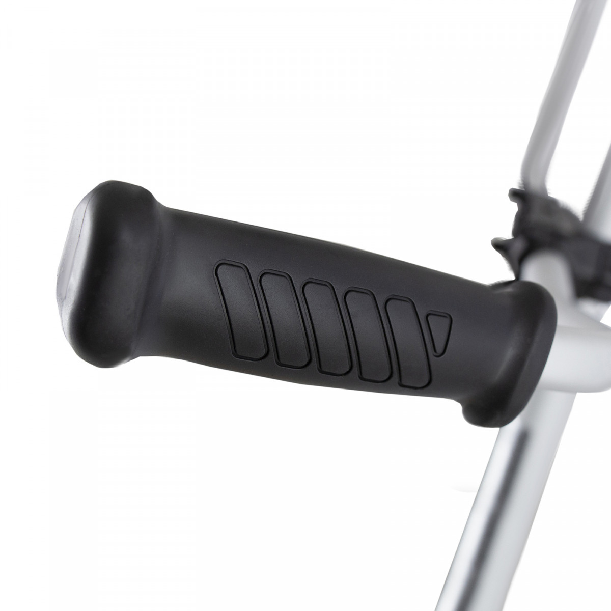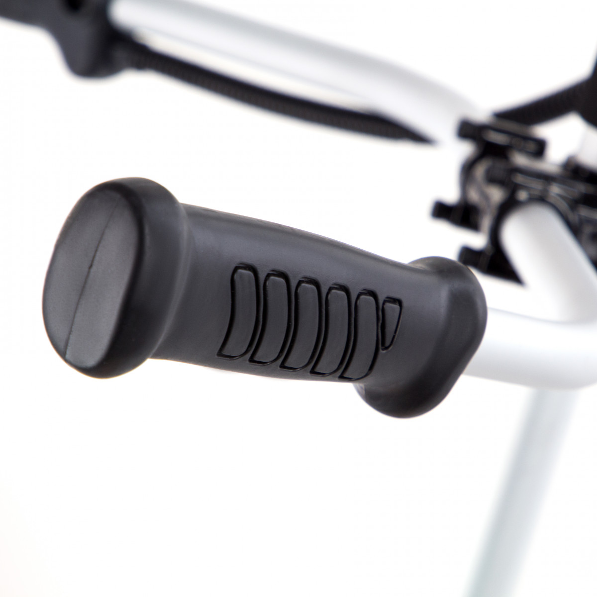 - Эргономичность — велосипедные асимметричные ручки с прорезиненными рукоятками удобно лежат в руках.