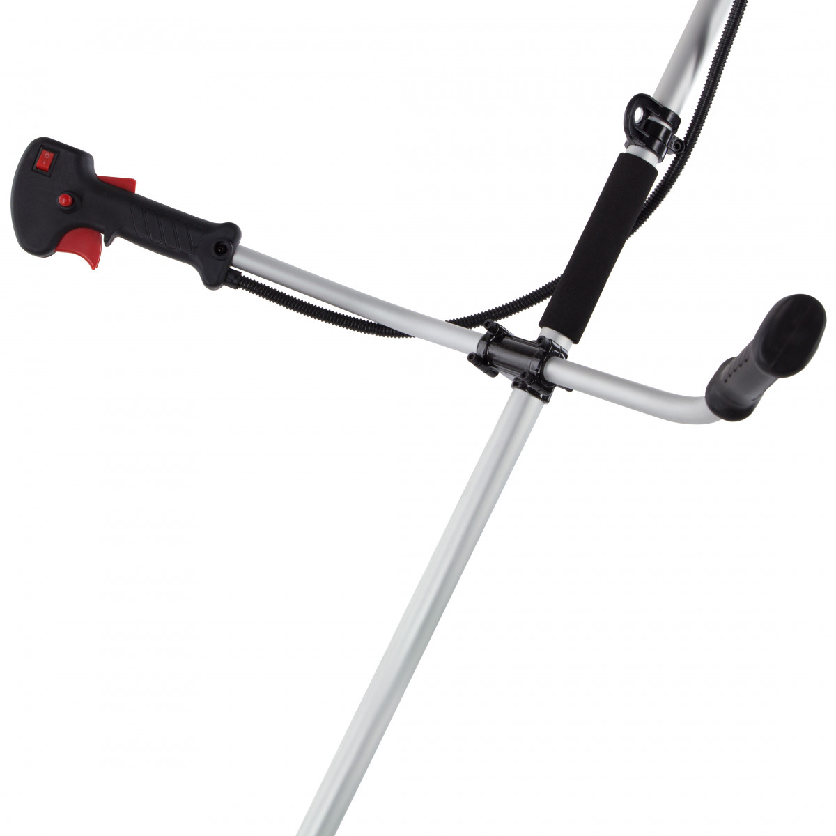 - Уменьшенная нагрузка на плечи и спину — триммер весит 7,5 кг и комплектуется наплечным ремнем.
