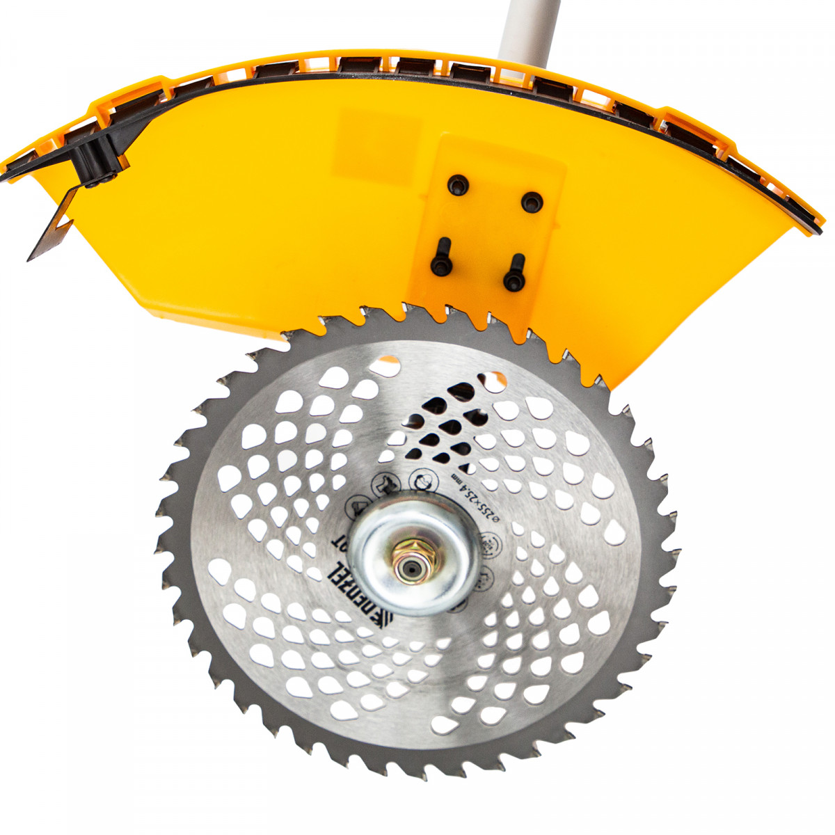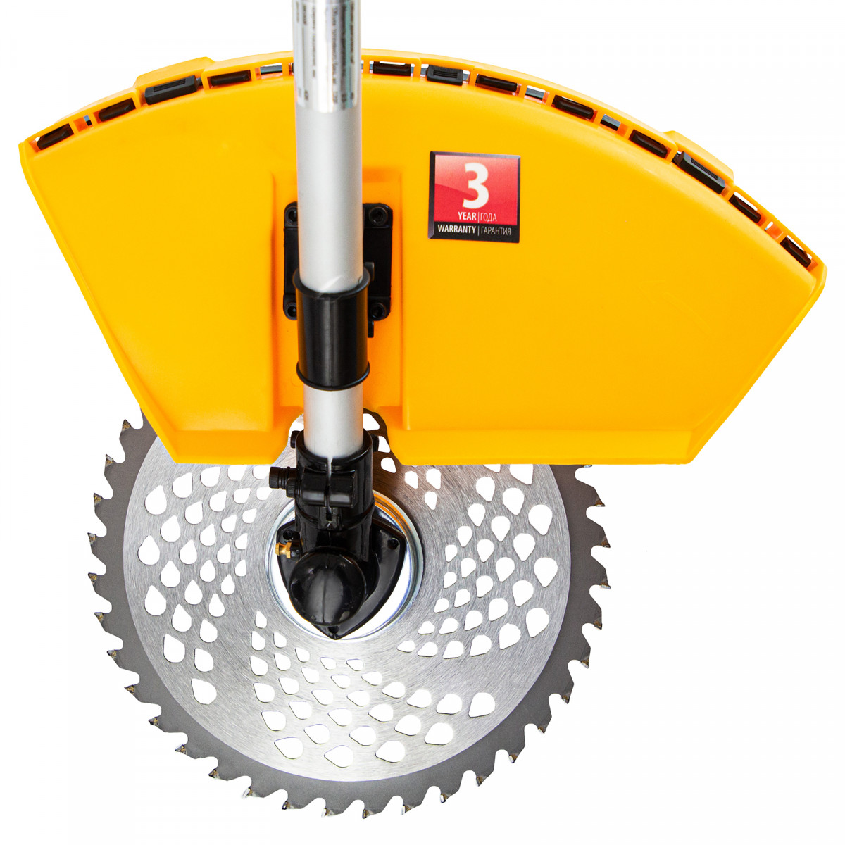 • Безопасность — пластиковый кожух защищает пользователя от вылетающей травы, камней, веток и мелких частиц.