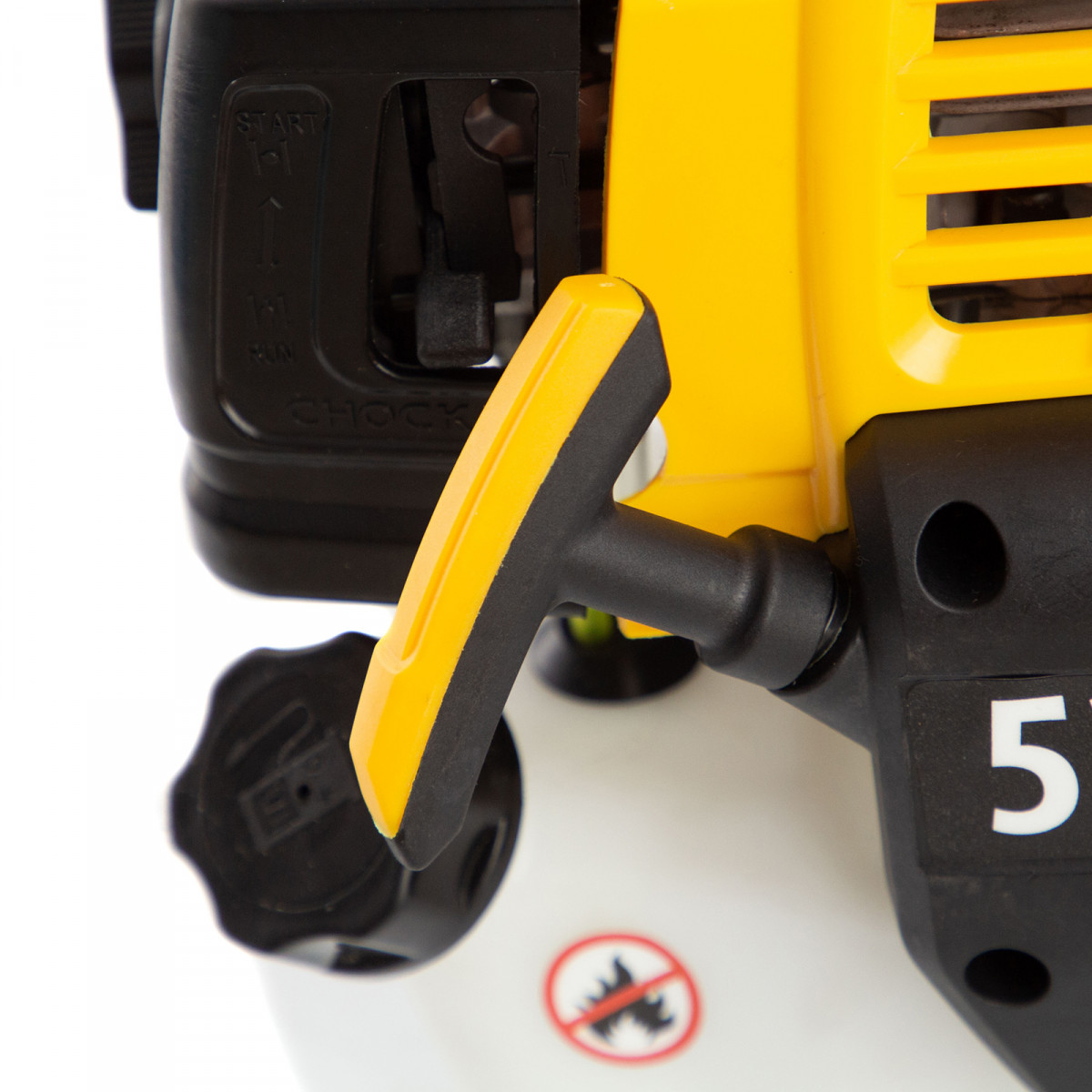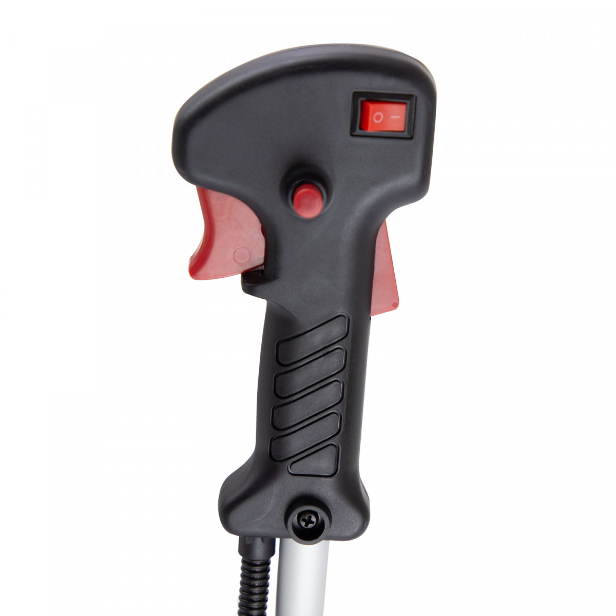 - Удобное и простое управление — все кнопки собраны на правой рукоятке: выключатель, клавиша газа и блокиратор случайного пуска.