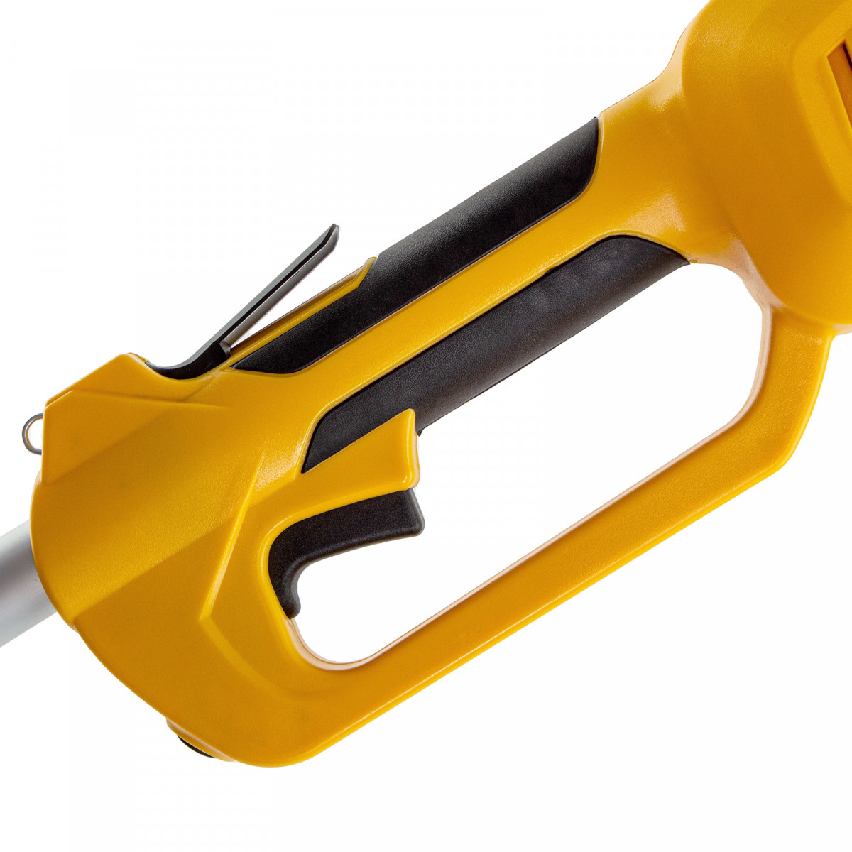 • Снижение нагрузки на спину — наплечный ремень равномерно распределяет вес садового электротриммера, что уменьшает усталость при длительной работе.