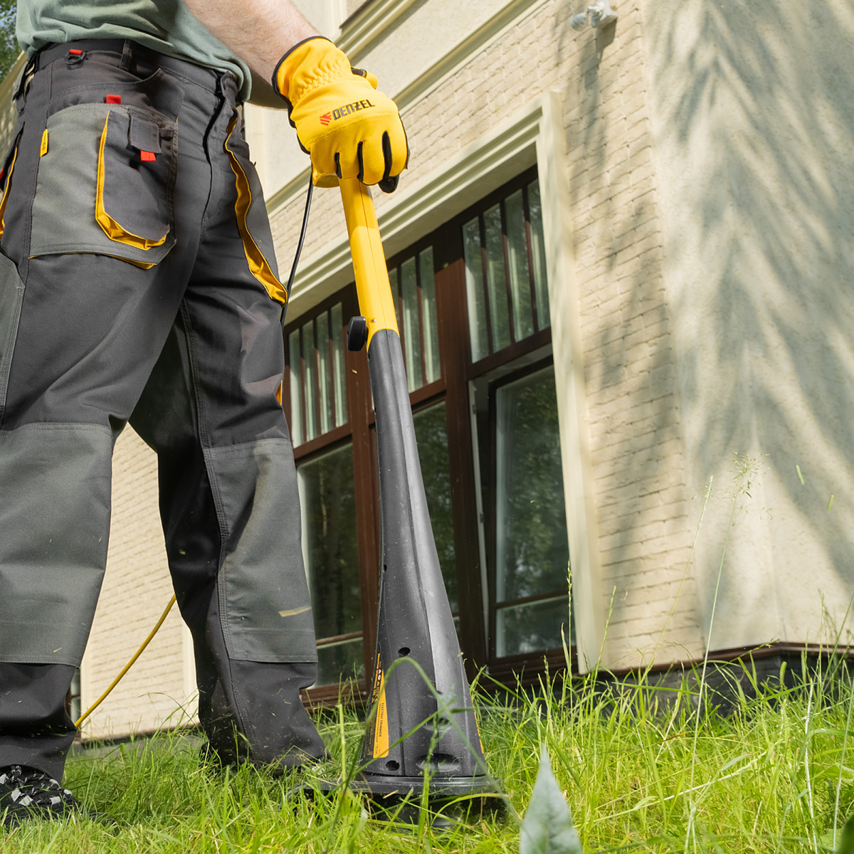Электрический триммер Denzel TE-350 96619 мощностью 350 Вт с полуавтоматической катушкой предназначен для скашивания газонной травы с шириной прохода 260 мм. Также с его помощью можно обработать места, недоступные для колесной косилки, — вдоль стен и заборов, в ямках и на возвышенностях, вокруг деревьев и клумб. Электромотор работает тихо, не выделяет вредных выхлопов и не требует постоянного технического обслуживания, что делает работу с триммером максимально комфортной. Двигатель вращает оснастку со скоростью 12500 об/мин, что позволяет сократить время работы.