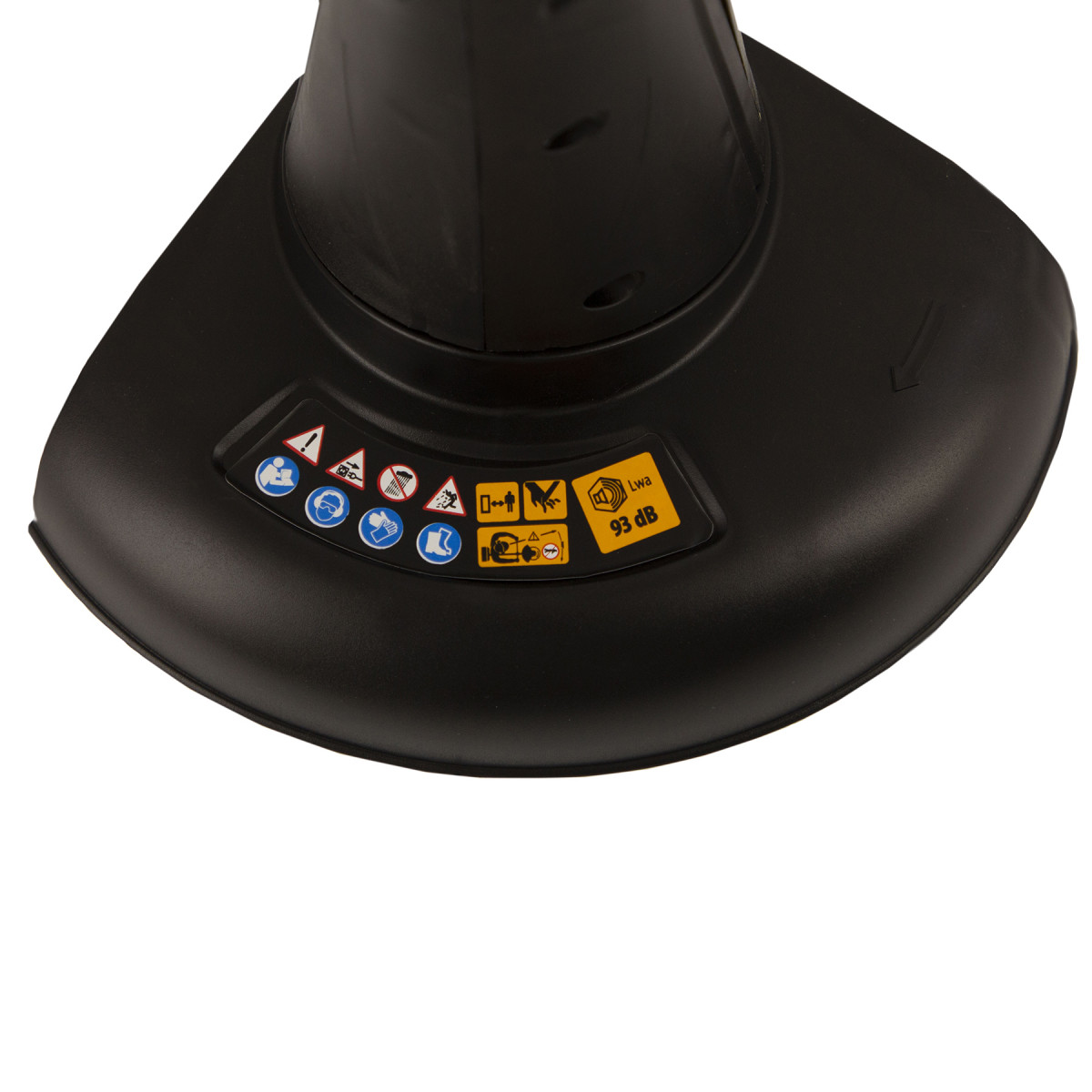 - Безопасная эксплуатация — специальный кожух защищает пользователя от летящей травы и твердых частиц.