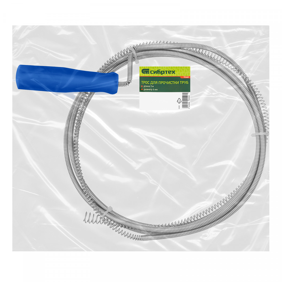 Трос для прочистки труб Сибртех 92460 длиной 3 м и диаметром 6 мм успешно справляется с засорами в канализационных трубах, вызванными скоплением шерсти, волос, жировых отложений. Представляет собой прочную и долговечную спираль с сердечником. Используется в быту.