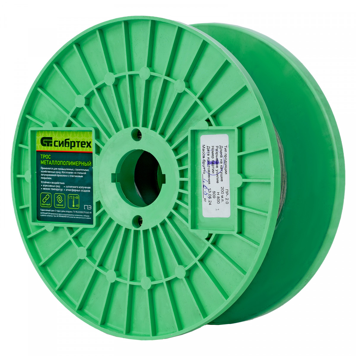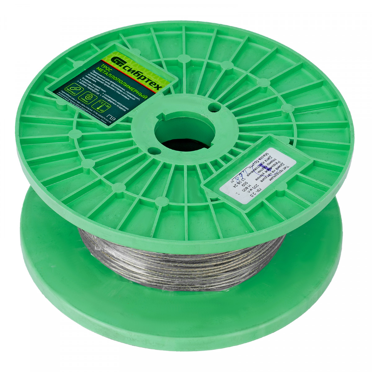 Трос металлополимерный прозрачный ПР-2.0, толщина 2.0 мм, катушка 200 метров Сибртех