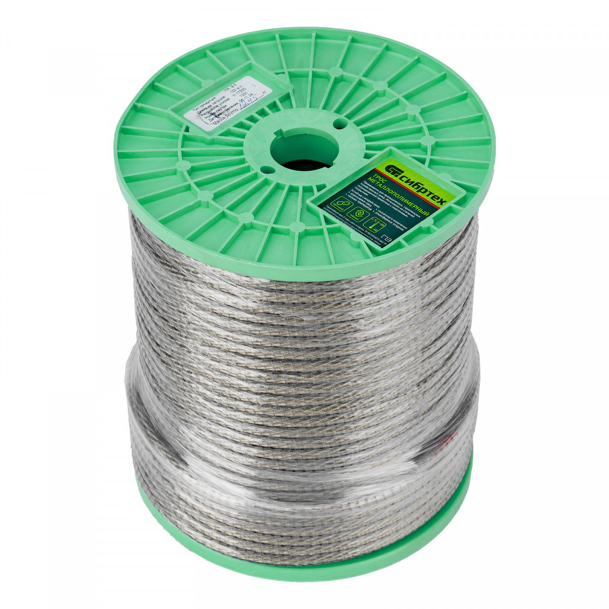 Металлополимерный прозрачный трос ПР-8.0 Сибртех 47641 толщиной 8 мм, 200 м. п. на катушке, используется для монтажа рекламных баннеров, установки ограждений, палаток, теплиц, погружения скважинных насосов и датчиков. Применяется в качестве садового троса-шнура для подвязки растений, а также может служить для развешивания белья. Жила шнура изготовлена из стальной проволоки, поэтому он выдерживает значительные нагрузки.