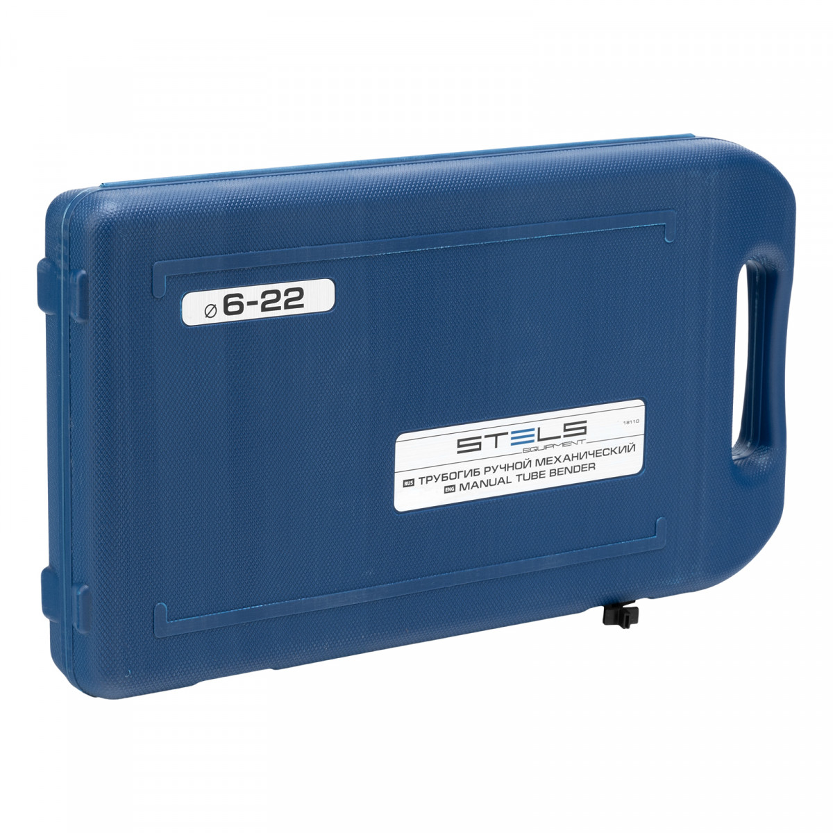 Ручной механический трубогиб Stels 18110 с башмаками 1/4"–7/8", в пластиковом кейсе, используется для установки любых типов трубопроводов. Обеспечивает точный и плавный изгиб отожженных труб из меди с покрытием и без, а также комбинированных металлопластиковых. Способен сгибать трубы под углом до 90°.