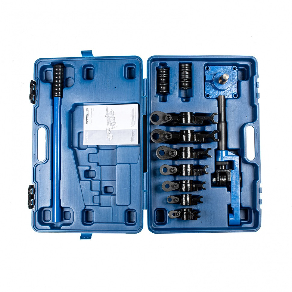 - Решение широкого спектра задач — в комплект входит 7 насадок для сгибания труб диаметром 3/8"-1" и толщиной стенок до 2 мм.