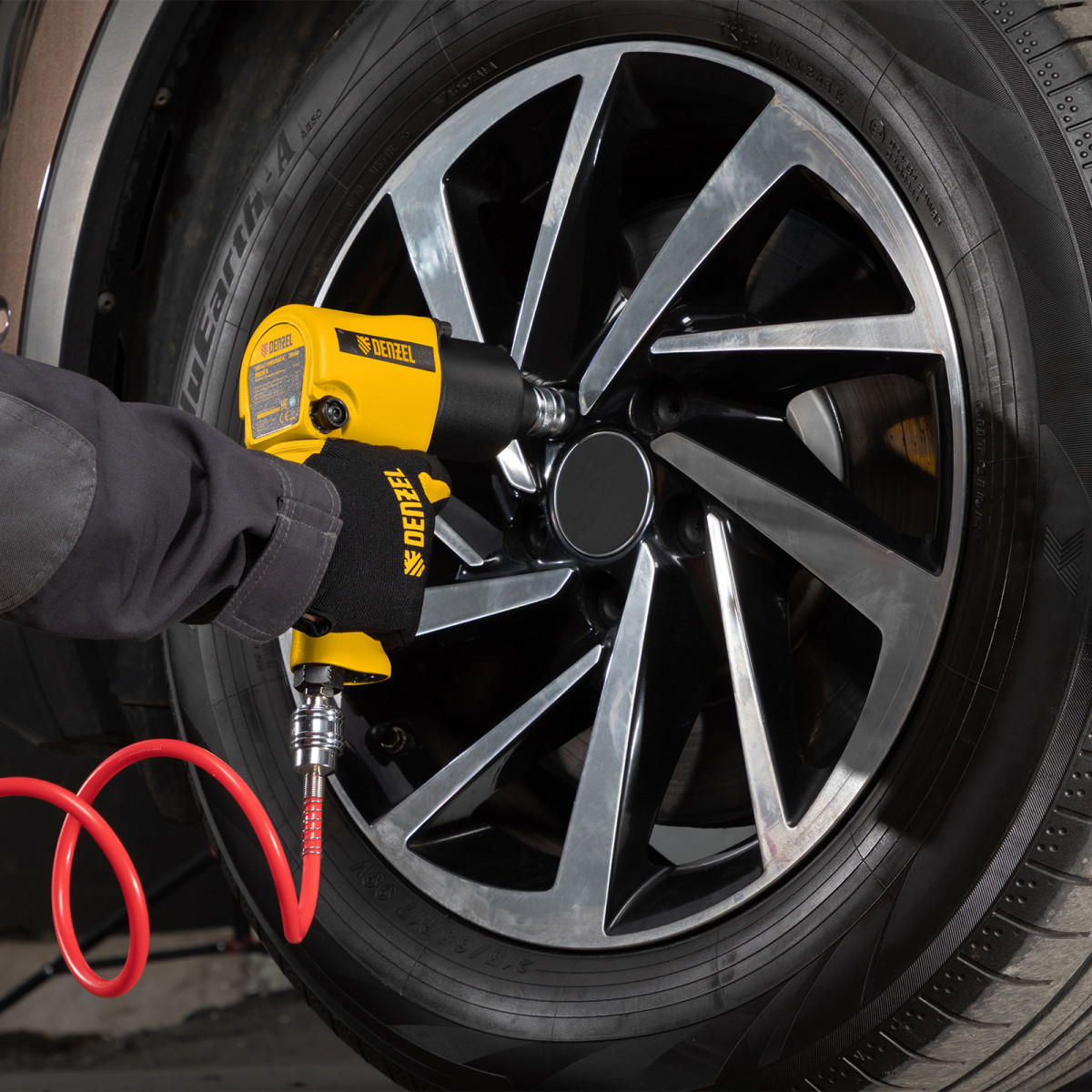 - Быстрая подготовка к работе — благодаря соединению рапид подключить гайковерт к компрессору можно за несколько секунд.