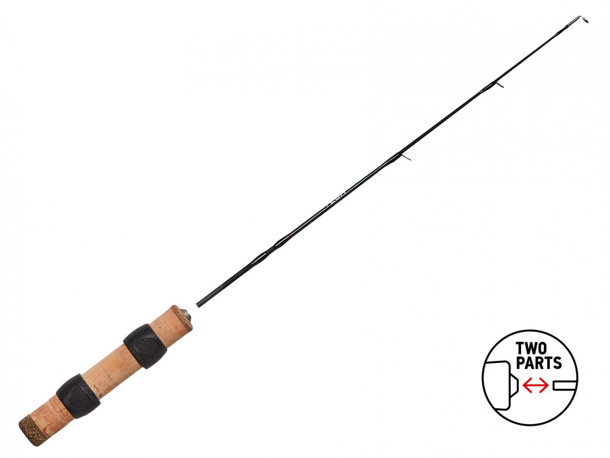 Двухчастная удочка для зимней ловли с бланком из высокомодульного графита T30. За счет этого она очень легкая и обладает высокой чувствительностью при ловле на блесны, балансиры и другие объемные приманки.