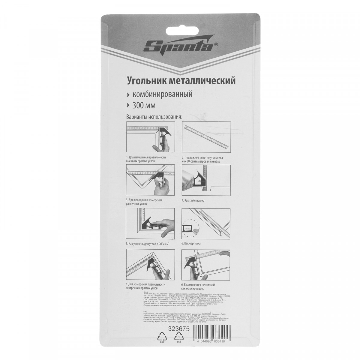 Угольник, 300 мм, металлический, комбинированный Sparta