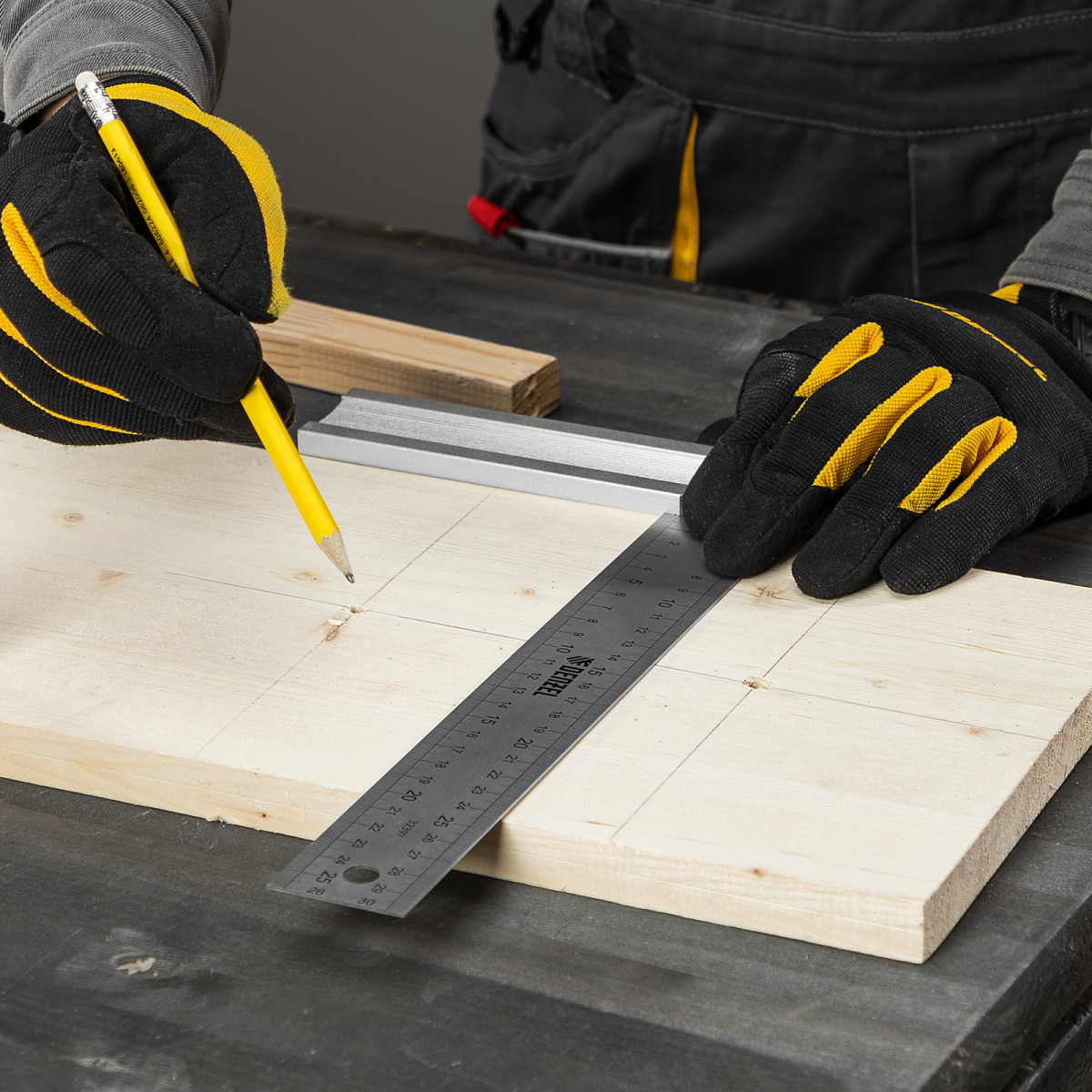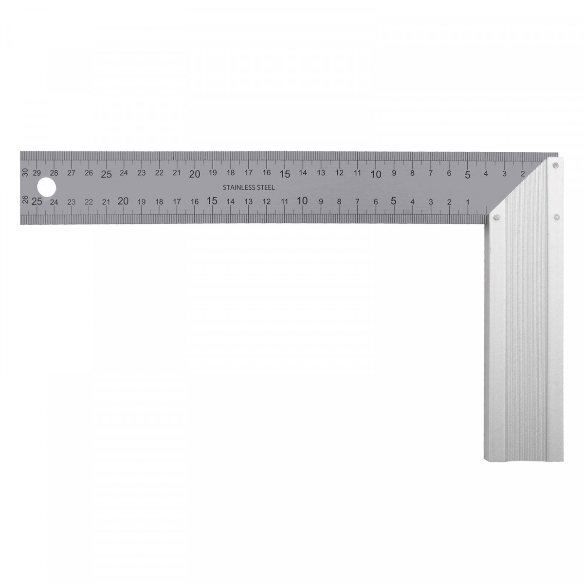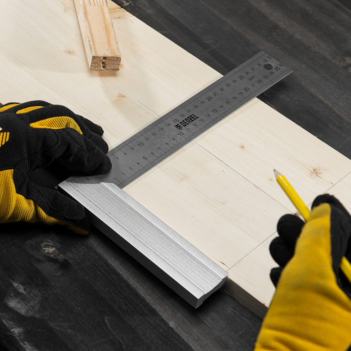 Угольник стальной 300 мм, нержавеющая сталь, градуировка, алюминиевое основание Denzel