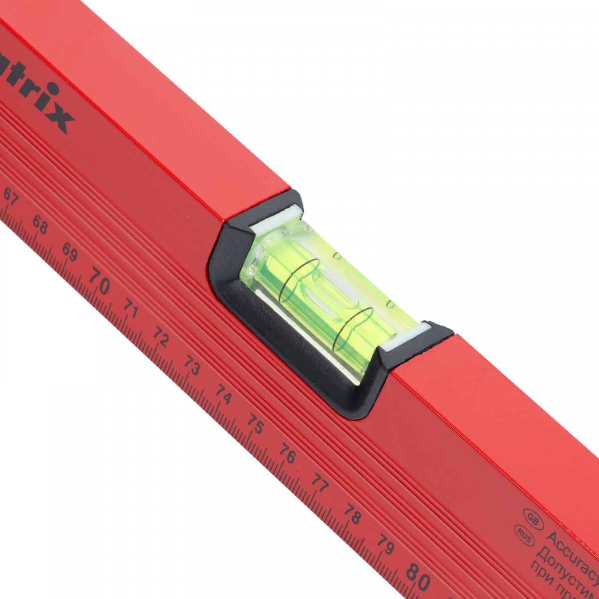 Алюминиевый уровень Matrix 33235 длиной 1500 мм, красного цвета, с 3 глазками и линейкой, пригодится при проведении строительных, ремонтных и монтажных работ. С ним повышается точность работы, что позволяет добиться качественного результата. Три колбы рассчитаны на проверку горизонтали, вертикали и угла 45 градусов, погрешность равна 1 мм/м (0,057 градуса).,Для определения отклонения вертикали 90 градусов необходимо использовать пузырьковую ампулу только в верхнем положении уровня. Только базовая поверхность является рабочей (противоположная ампуле 180 градусов).