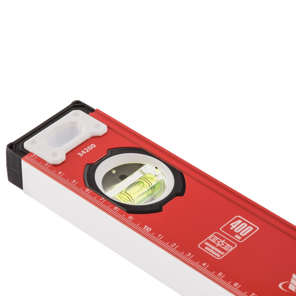 Уровень алюминиевый фрезерованный Matrix 34200 длиной 400 мм, с 3 глазками, предназначен для определения отклонений от горизонтальной и вертикальной поверхностей и угла 45°. Обеспечивает высокую точность полученных результатов, пригодится для выполнения строительных и отделочных работ.