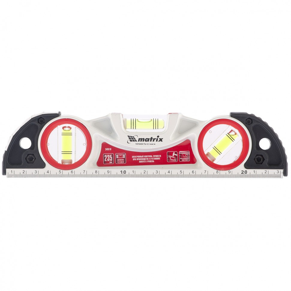 Уровень алюминиевый литой Matrix 34910 длиной 235 мм, с фрезерованной рабочей частью, 3 глазками и двумя ударными площадками, предназначен для проверки поверхностей на отклонение от горизонтали, вертикали и угла 45°. Инструмент значительно повышает точность проводимых работ, пригодится частному мастеру и профессионалу на строительной площадке, во время ремонта и для проведения монтажных работ.