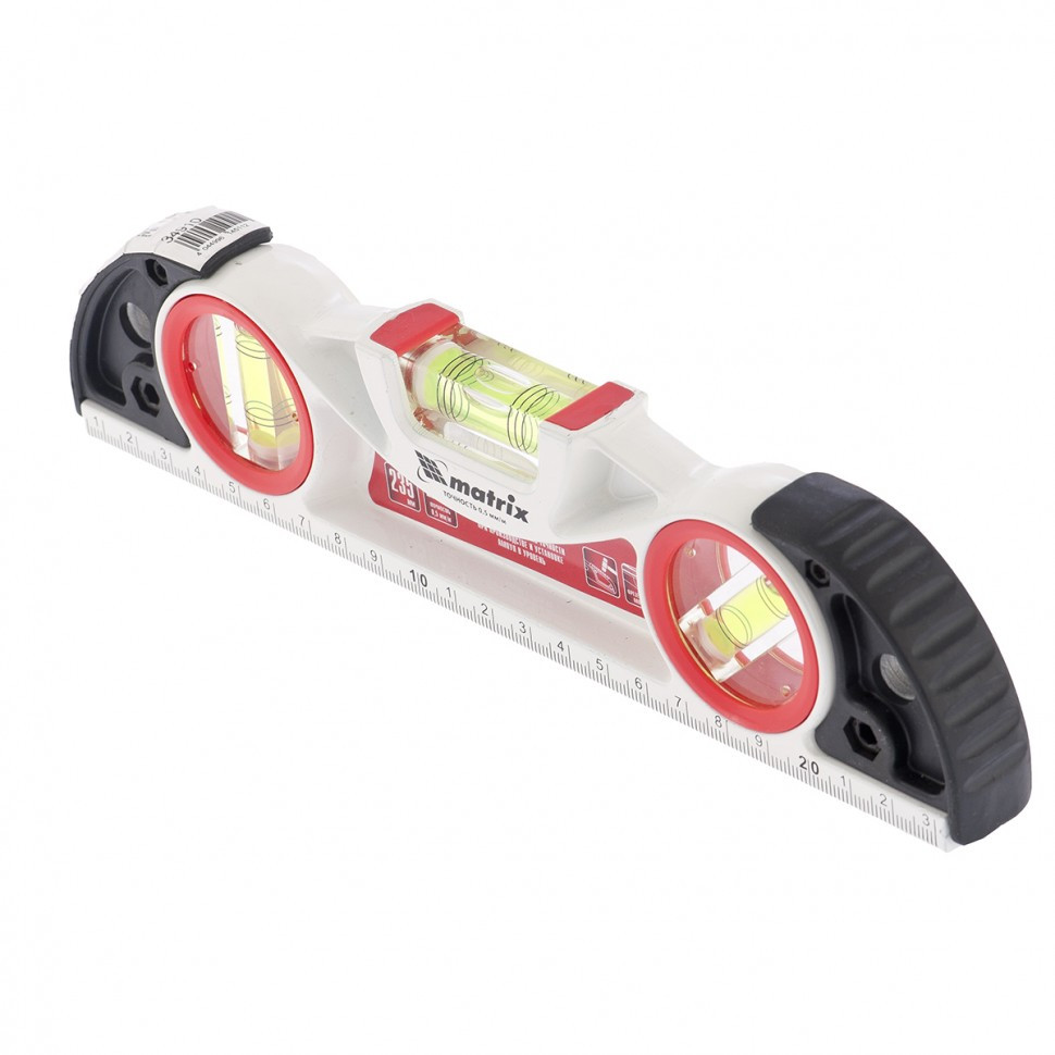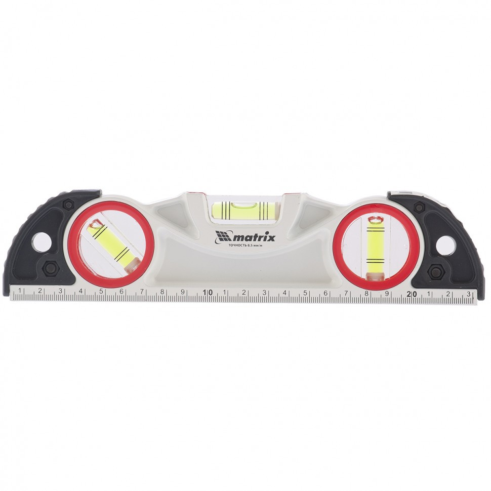 Уровень алюминиевый литой, фрезерованный, 3 глазка, две ударные площадки, 235 мм Matrix