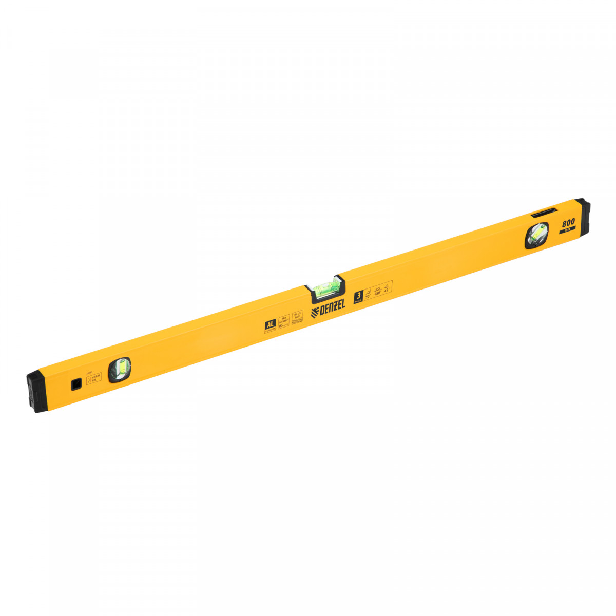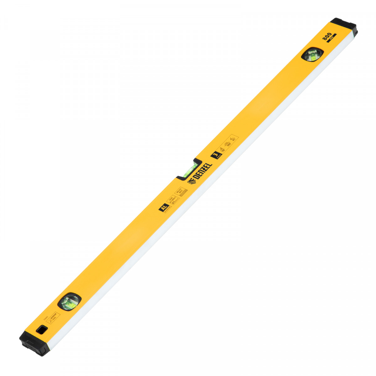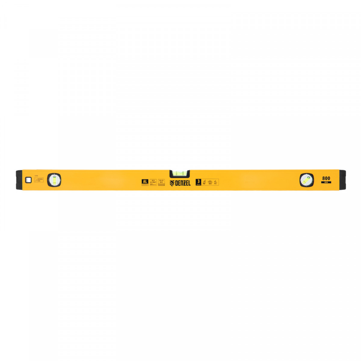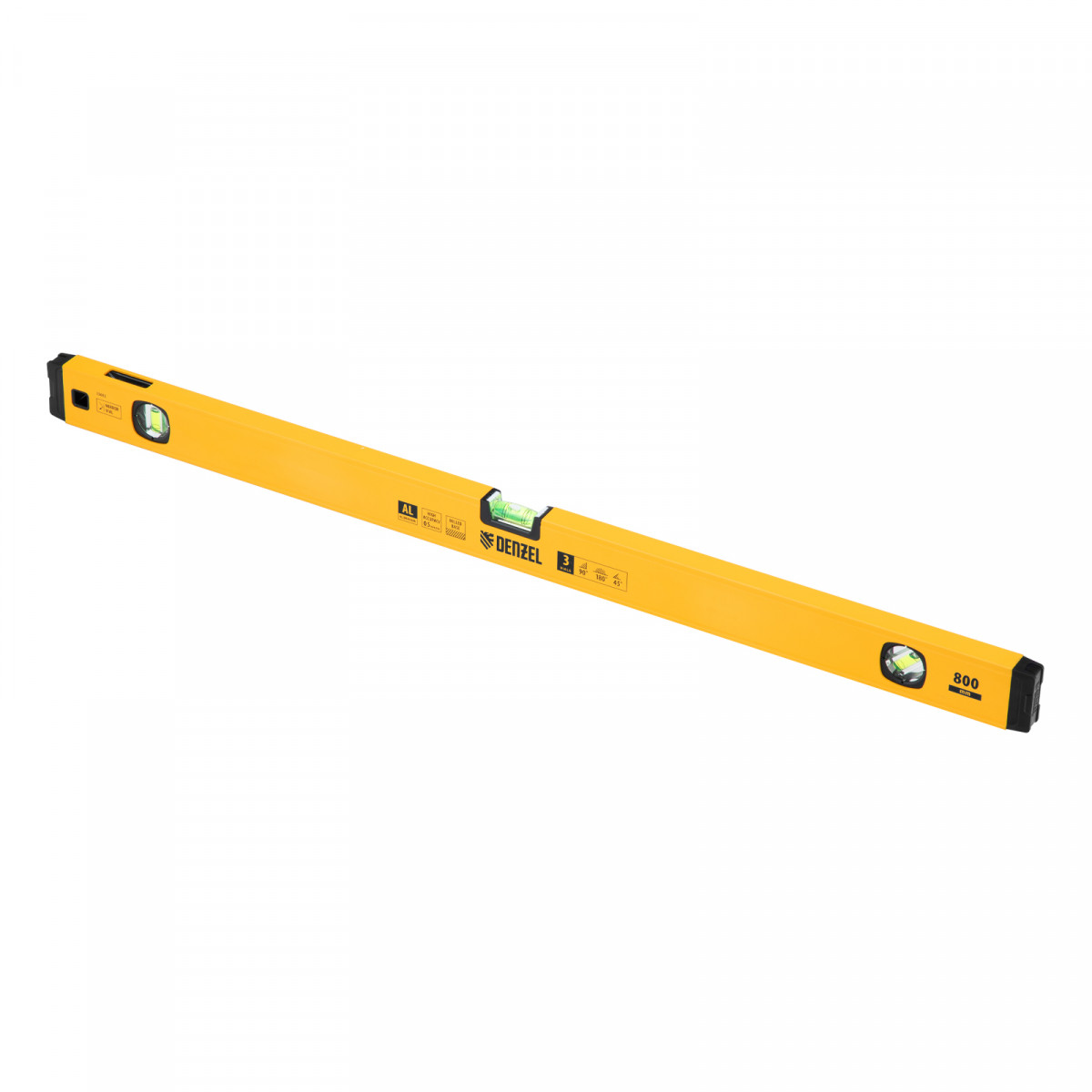 Уровень алюминиевый, магнит, фрезерованный, 3 глазка (1 зеркал.) 0,5 мм/м, 800 мм Denzel