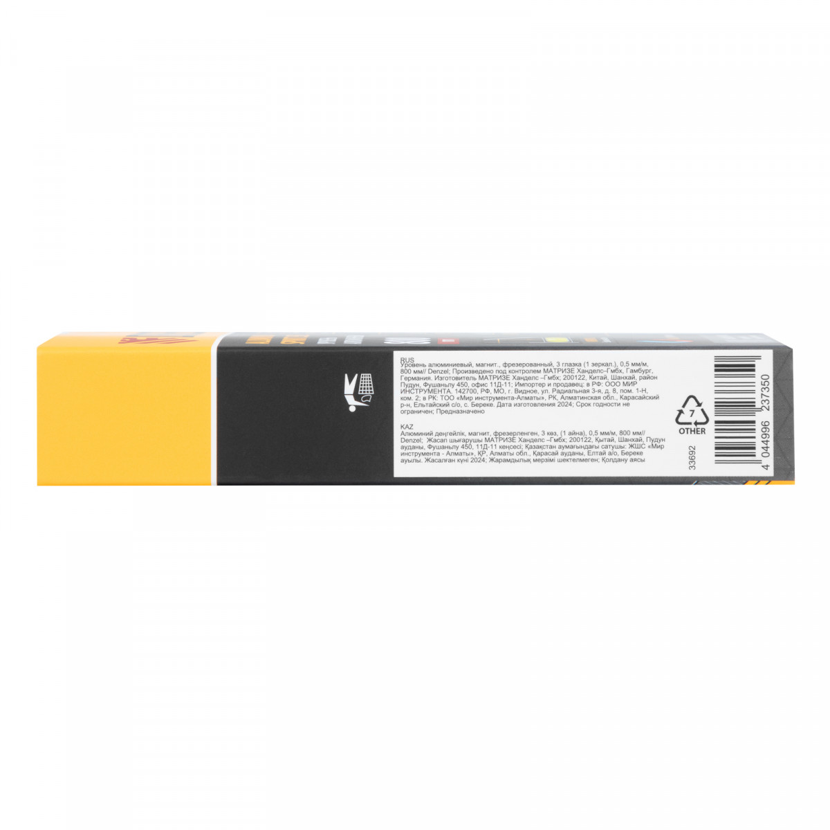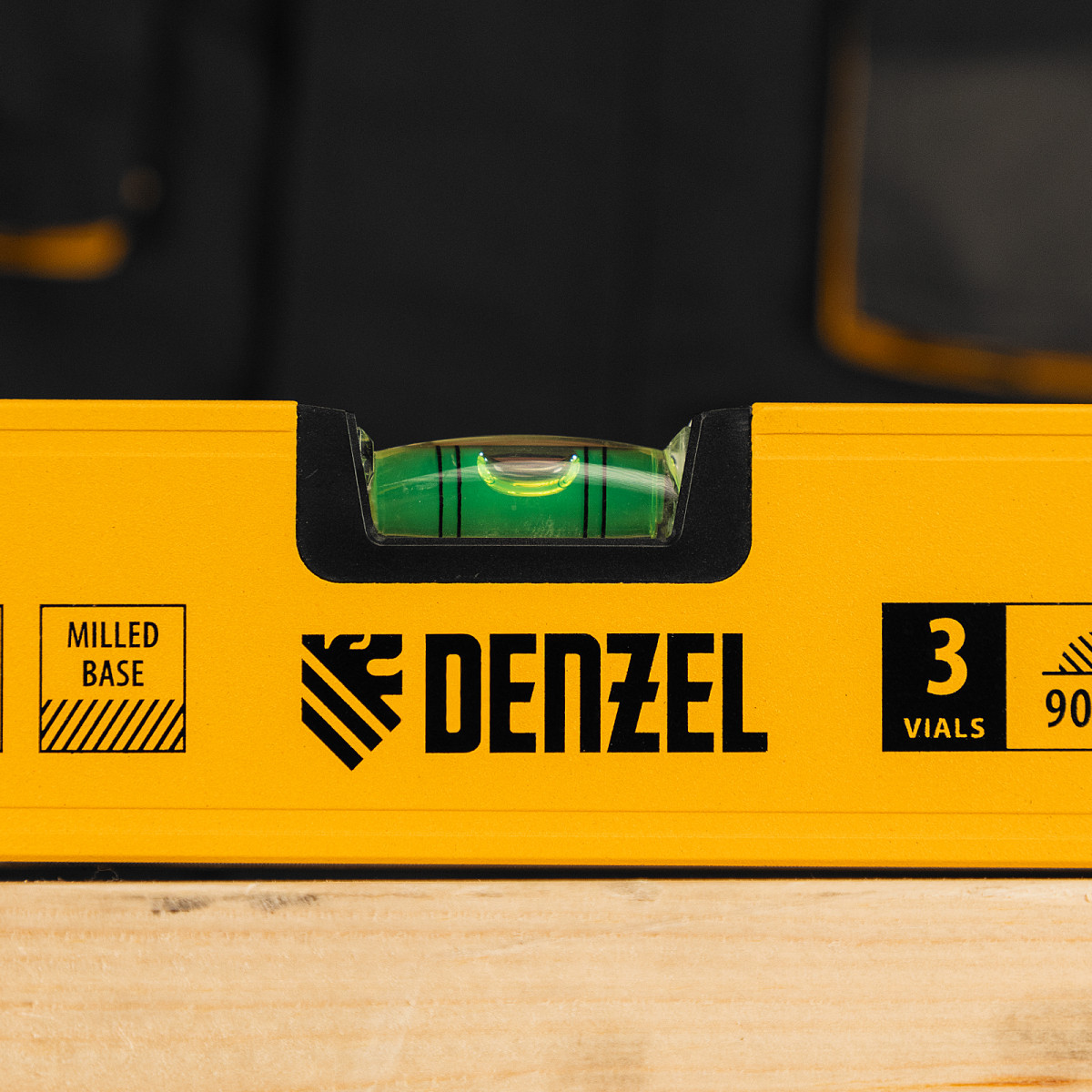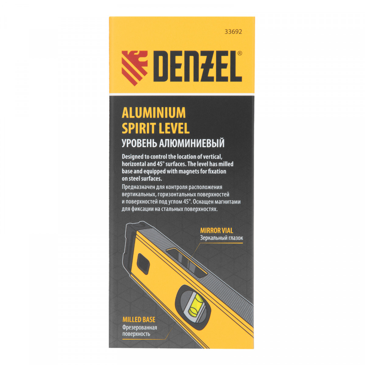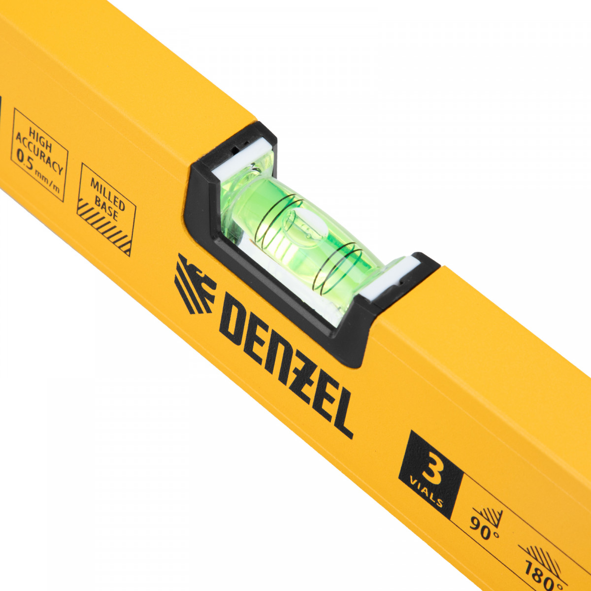 Уровень алюминиевый, магнит, фрезерованный, 3 глазка (1 зеркал.) 0,5 мм/м, 800 мм Denzel