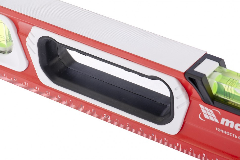 - Дополнительные возможности — измерительная шкала на корпусе позволяет использовать уровень в качестве линейки.