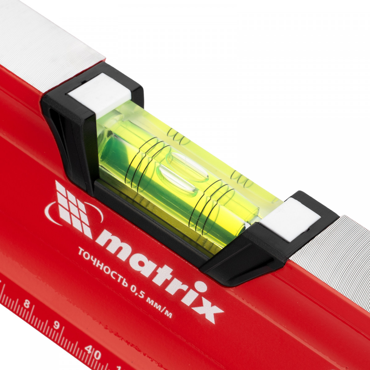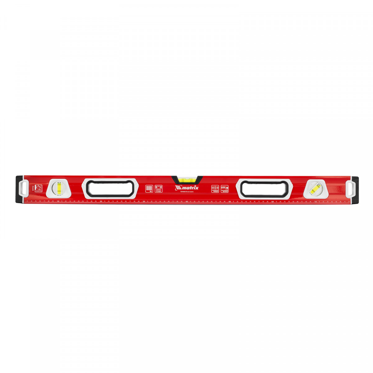 Уровень алюминиевый фрезерованный Matrix 34732 длиной 800 мм, с магнитной полосой и 2-компонентными рукоятками, 3 глазками и 1 зеркальным отражателем, — измерительный инструмент для контроля отклонений поверхностей от горизонтали, вертикали и угла 45°. Используется для выполнения работ, требующих высокой точности.