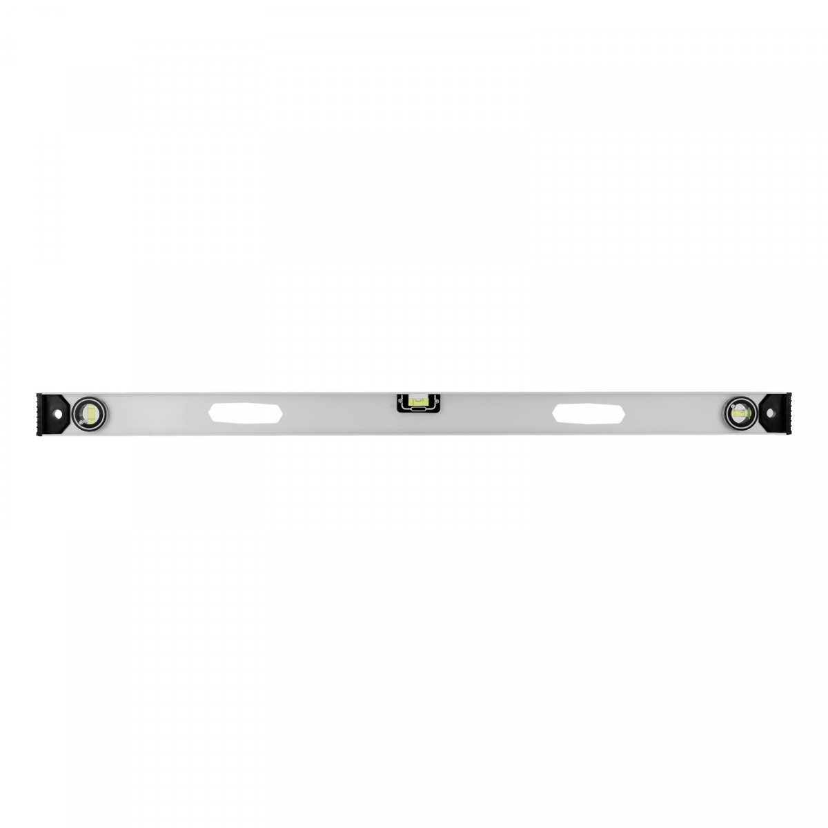Алюминиевый уровень Matrix «Рельс» 34029 длиной 1000 мм имеет 3 глазка: 2 для проверки отклонений от заданной вертикали и горизонтали и 1 поворотный для проверки наклонных поверхностей.