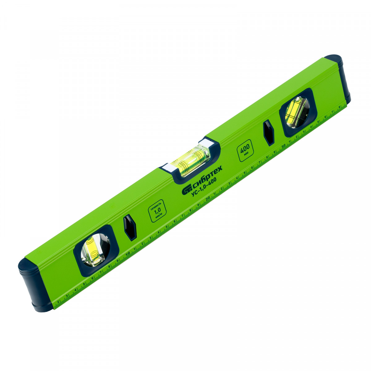 Уровень алюминиевый УС-1, 0-400, фрезерованный, 3 глазка, 400 мм Сибртех