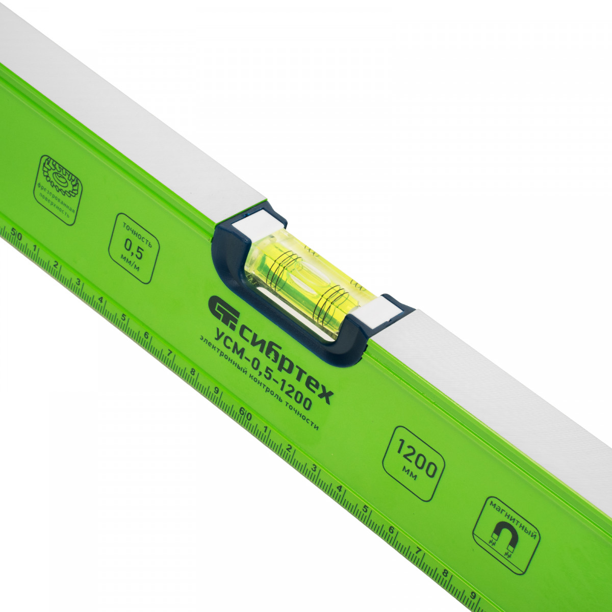 Уровень алюминиевый УСМ-0,5-1200, фрезерованный, 3 глазка, магнитный, рукоятки, 1200 мм Сибртех