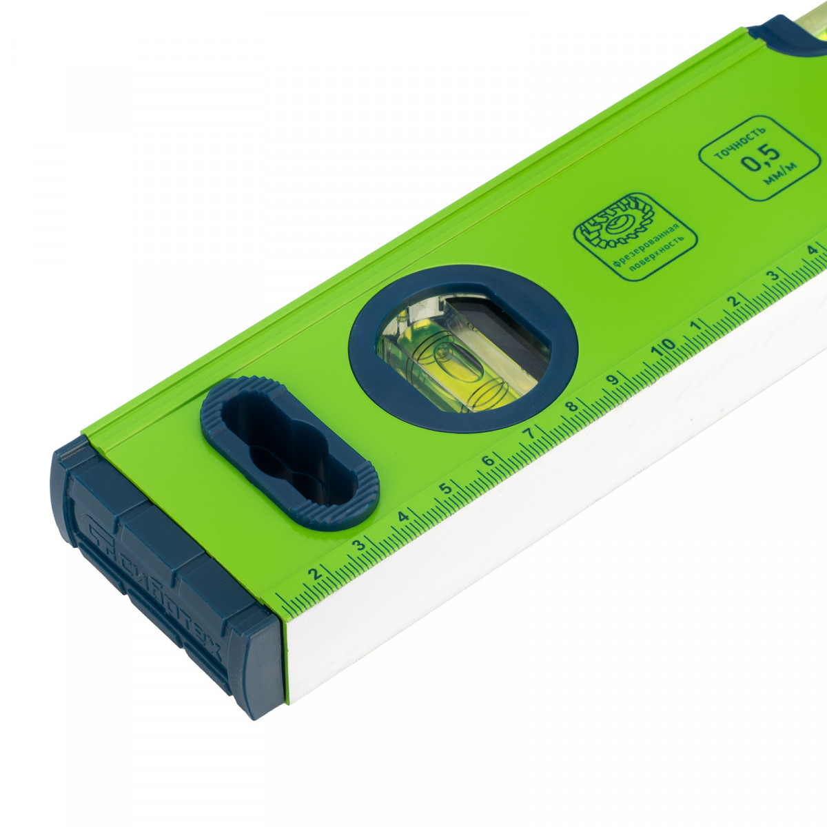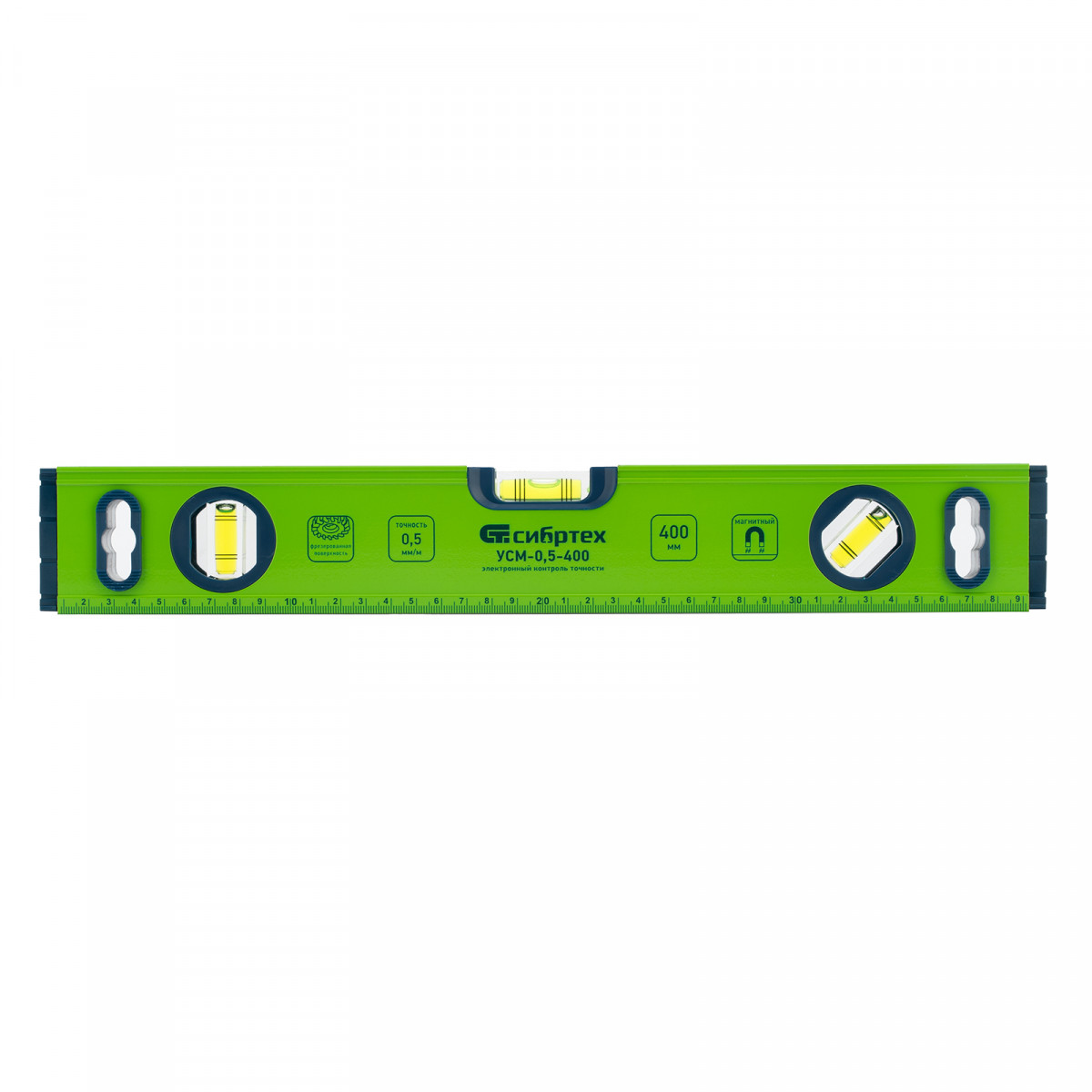 Алюминиевый фрезерованный уровень Сибртех УСМ-0,5-400 34113 длиной 400 мм, магнитный, с 3 глазками, поможет найти отклонения от горизонтальной и вертикальной плоскостей и угла 45 градусов. Инструмент незаменим при осуществлении строительных и ремонтных работ, т.к. обеспечивает высокую точность работы.,Для определения отклонения вертикали 90 градусов необходимо использовать пузырьковую ампулу только в верхнем положении уровня. Только базовая поверхность является рабочей (противоположная ампуле 180 градусов).