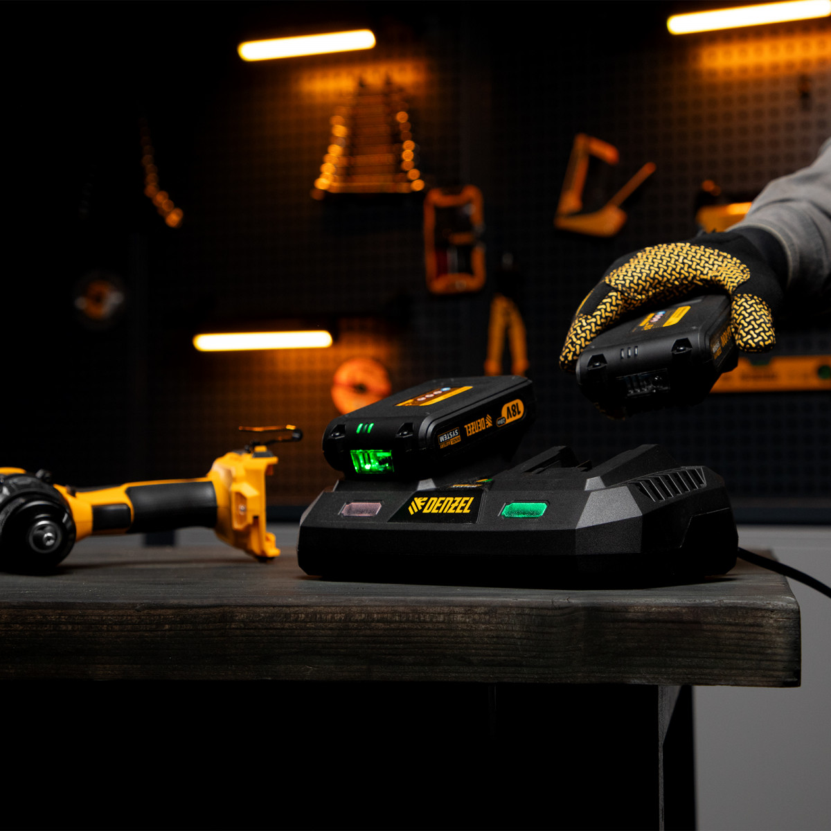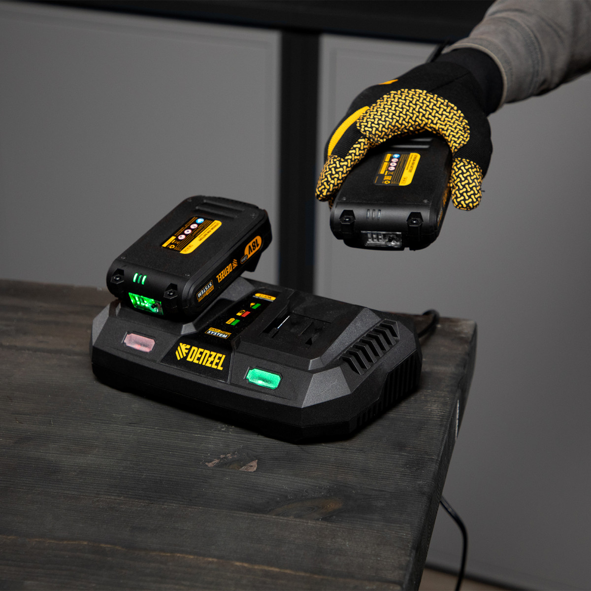 Универсальное зарядное устройство Denzel IBC-18-3.0-2 28454 подходит ко всем Li-Ion аккумуляторам на платформе Denzel 18 В. Быстрое зарядное устройство обеспечивает высокую скорость зарядки сразу двух батарей и гарантирует превосходную работу вашего инструмента.