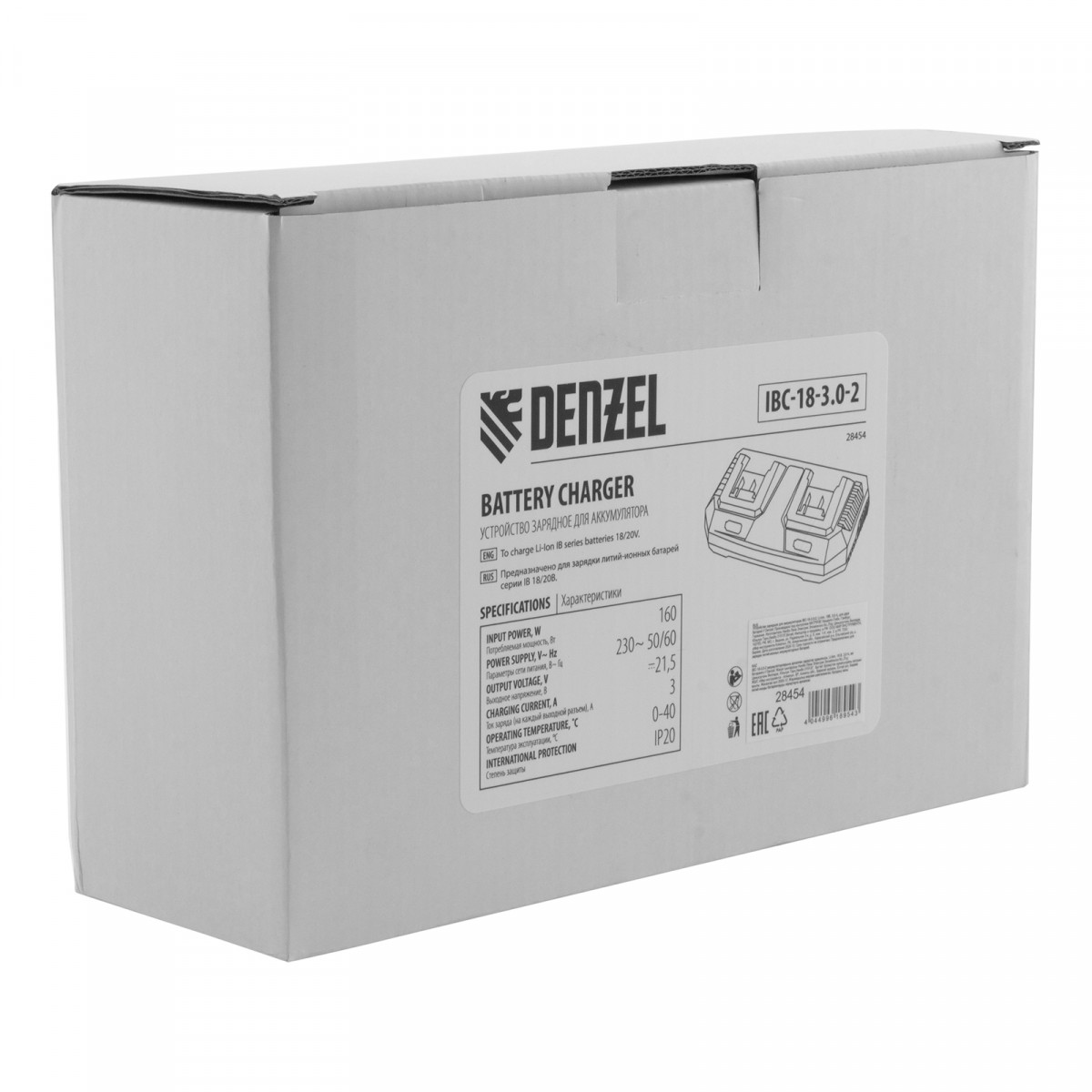 Устройство зарядное для аккумуляторов IBC-18-3.0-2, Li-Ion, 18В, 3.0 А, для двух батарей Denzel