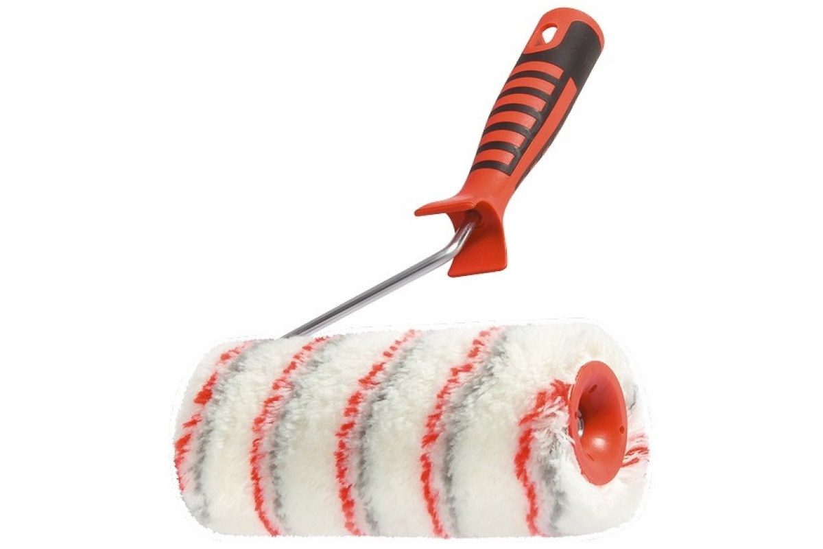 Произведен по технологии Termofusion. Термически приклеенная шубка валика износостойкая и бесшовная, создает идеально ровное покрытие. Улучшенная конструкция ролика обеспечивает легкое и свободное вращение. Материал шубки валика - полиамид. Применяется для работ с водно-дисперсионными красками и красками на основе химических растворителей. Предназначен для нанесения краски на неровные грубые поверхности. В комплекте двухкомпонентная ручка, бюгель оцинкован.