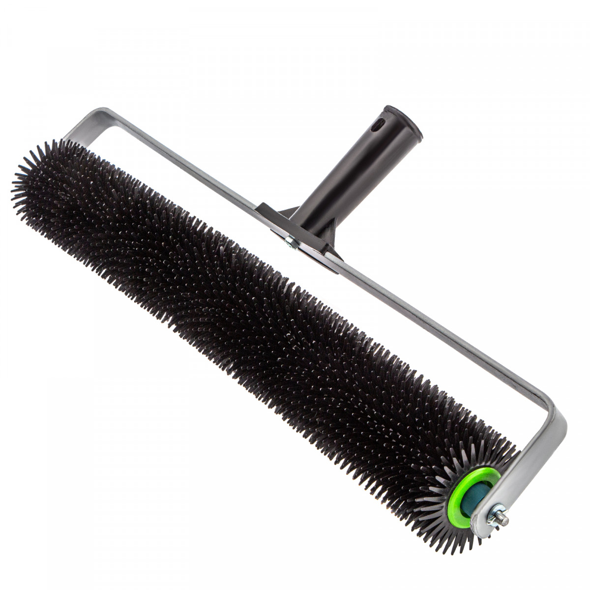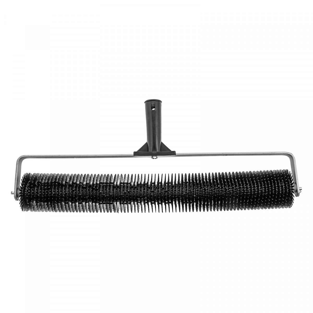 Валик игольчатый Сибртех 81110 с ручкой, длина 240 мм, применяется при монтаже наливных полов, а также при работе с другими вязкими материалами для удаления воздушных пузырей и полостей между рабочими слоями. Благодаря ширине 500 мм валик можно использовать на поверхности большой площади. Иголки длиной 14 мм подходят для покрытий небольшой толщины.