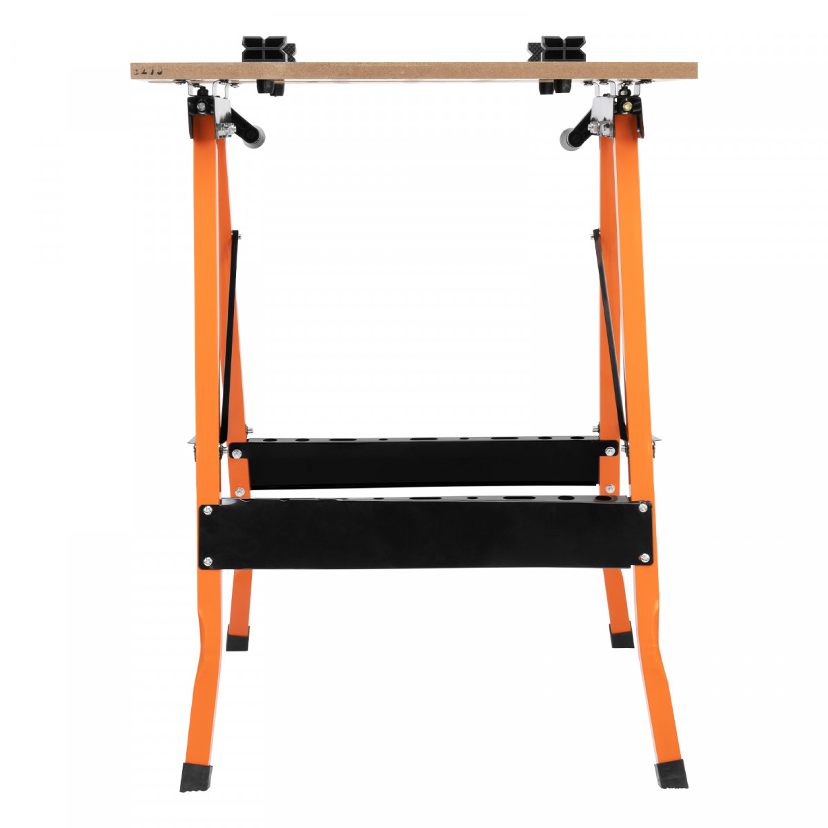 Портативный верстак-тиски Sparta 257065 размером 605 х 635 х 750 мм служит для зажимания заготовок и используется для выполнения столярных и слесарных работ. Столешница верстака представляет собой тиски из двух раздельных блоков, которые позволяют фиксировать даже детали с непараллельными гранями. Верстак пригодится дома и в частной мастерской. Приспособление необходимо устанавливать на ровной поверхности для максимальной устойчивости и исключения травм из-за несоблюдения техники безопасности.