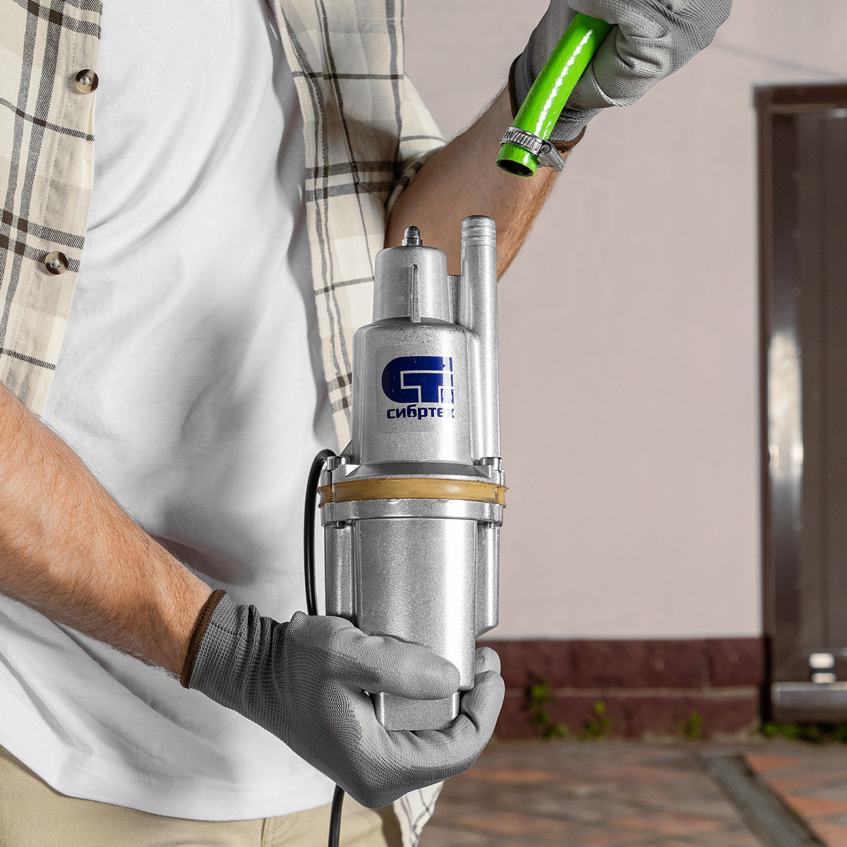 Вибрационный насос Сибртех СВН300-15 99302 мощностью 300 Вт, с кабелем длиной 15 м, способен поднимать чистую воду с глубины до 5 м из колодцев, резервуаров и водоемов со скоростью 1200 л/ч на высоту до 75 м. Используется для организации систем орошения и водоснабжения на даче, также с его помощью можно производить осушение подвалов, погребов, цокольных этажей. Напора и рабочего давления до 7,5 бар достаточно для подачи воды на 2-3 этаж.