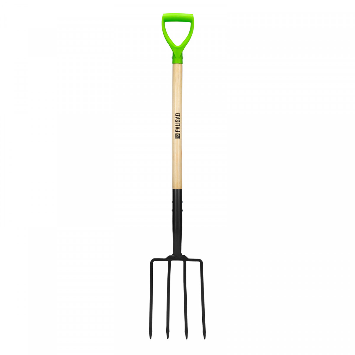 4-рогие огородные вилы Palisad 61394 размером 195 x 295 x 1165 мм, с кованой рабочей частью и деревянным лакированным черенком, предназначены для вскапывания и рыхления почвы, аэрации грунта, а также для выкапывания корнеплодов. Незаменимы для выполнения сельскохозяйственных работ на приусадебном участке.
