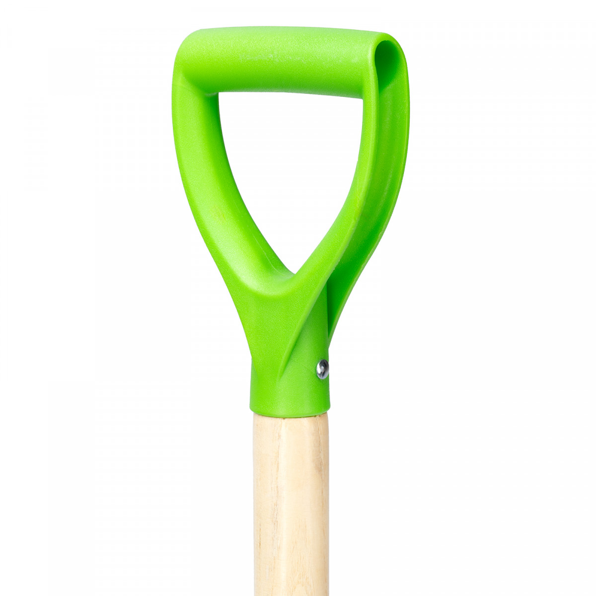 - Долговечность — антикоррозийное покрытие предотвращает разрушение, деревянный черенок покрыт лаком для защиты от влаги.
