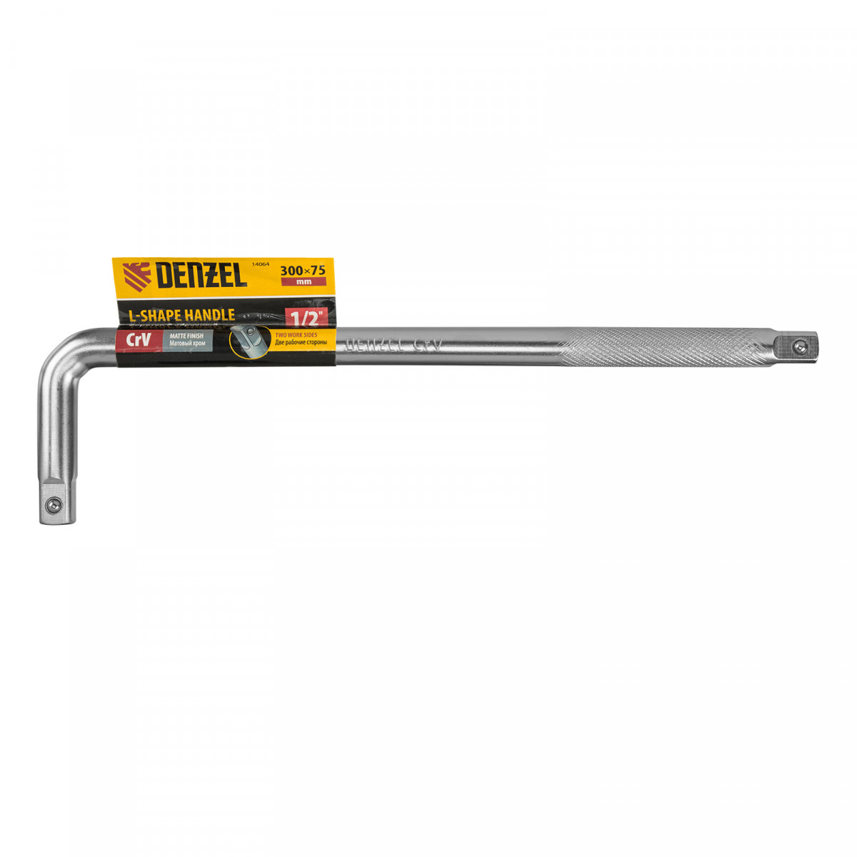 Вороток Г-образный, 300*75 мм, квадрат 1/2", CrV, матовый хром Denzel
