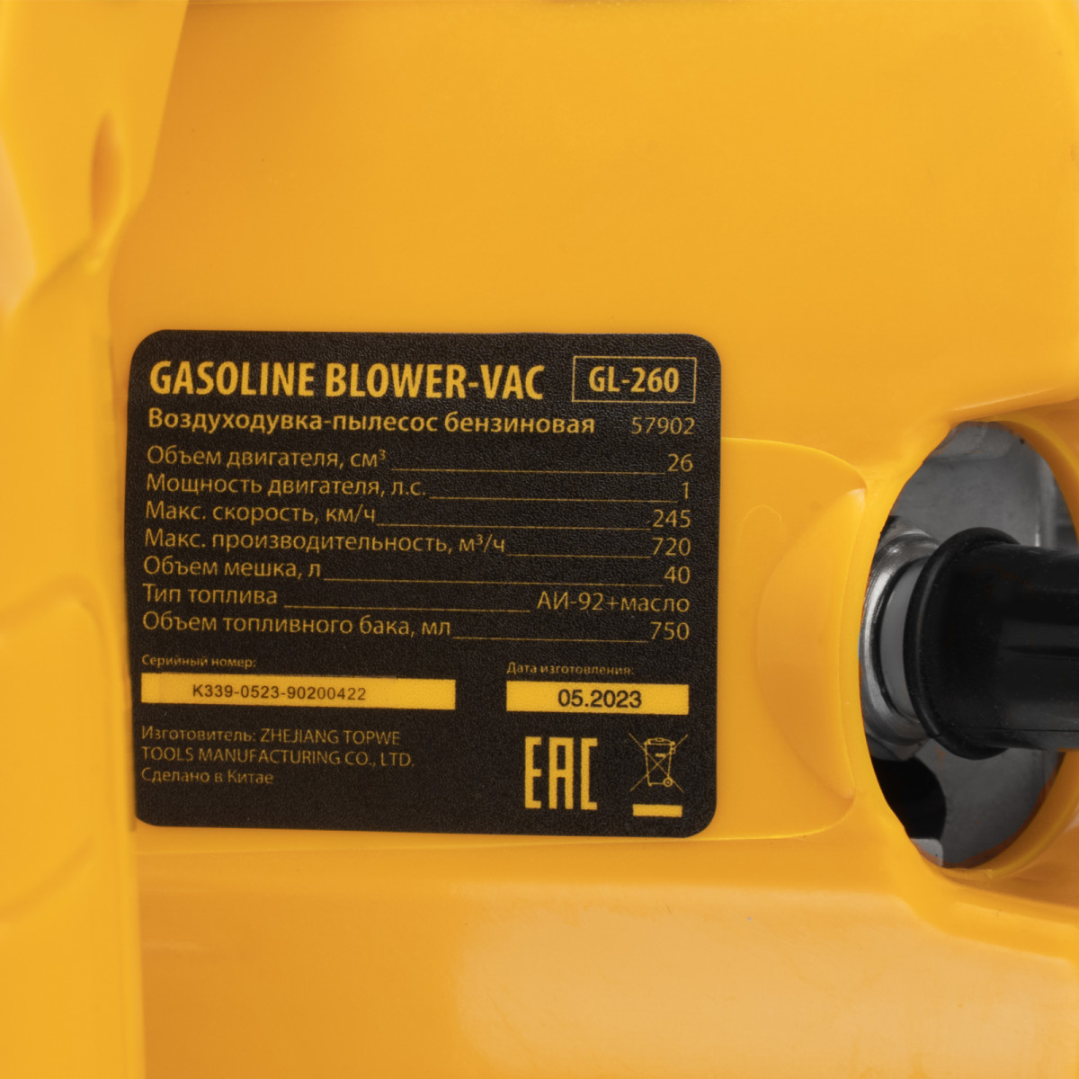 Воздуходувка-пылесос бензиновая GL-260, 26 см3, 1 л.с. Denzel