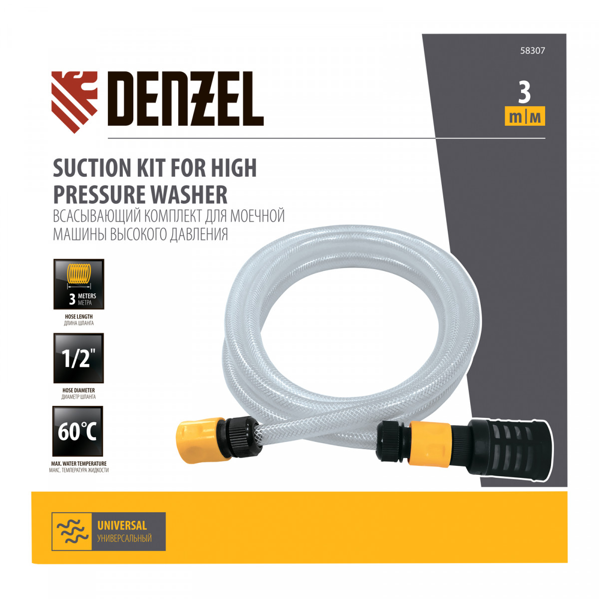 Всасывающий комплект для моечных машин высокого давления, 3 м, диаметр шланга 1/2 дюйм Denzel