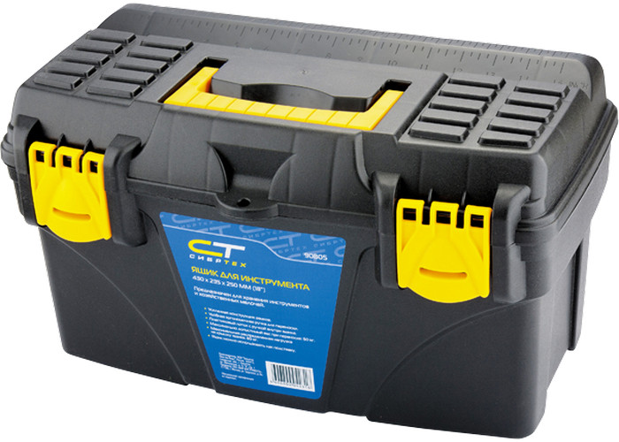 Современный внешний вид, стильное цветовое решение и необычная шагреневая фактура пластика, приятная на ощупь. Многочисленные ребра жесткости придают корпусу дополнительную прочность, благодаря чему ящик устойчив к падениям на твердые поверхности и выдерживает нагрузку до 100 кг. Ящик оборудован эргономичной ручкой для переноски, а петли крышки и ручки выдерживают его загрузку до 50 кг. С помощью трехрядных петель усилена конструкция замков и верхней крышки. Также, у ящиков СИБРТЕХ продумано внутреннее пространство: для хранения мелких деталей и небольшого инструмента имеется пластиковый вкладыш с ручкой. На корпусе крышки всех моделей нанесена линейка в дюймах и сантиметрах, что позволяет оперативно делать необходимые замеры.