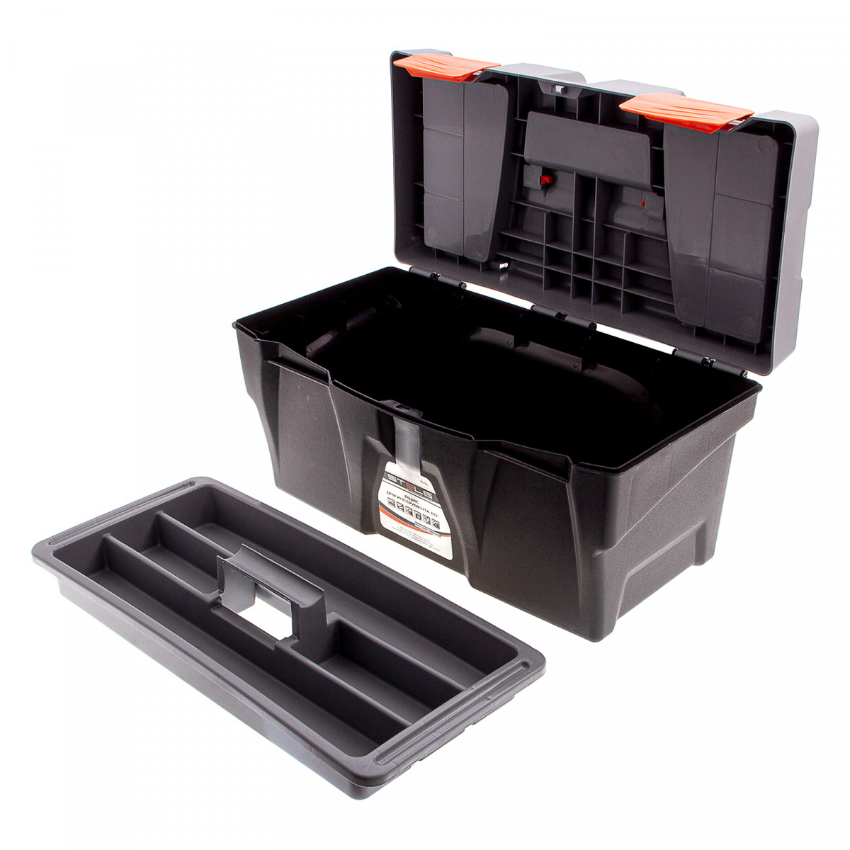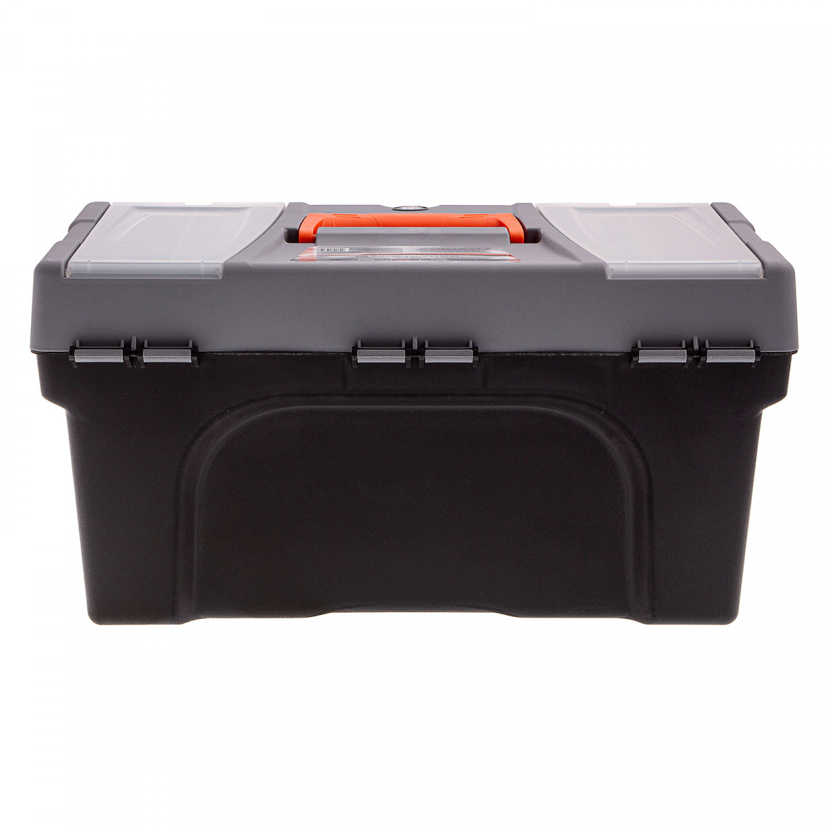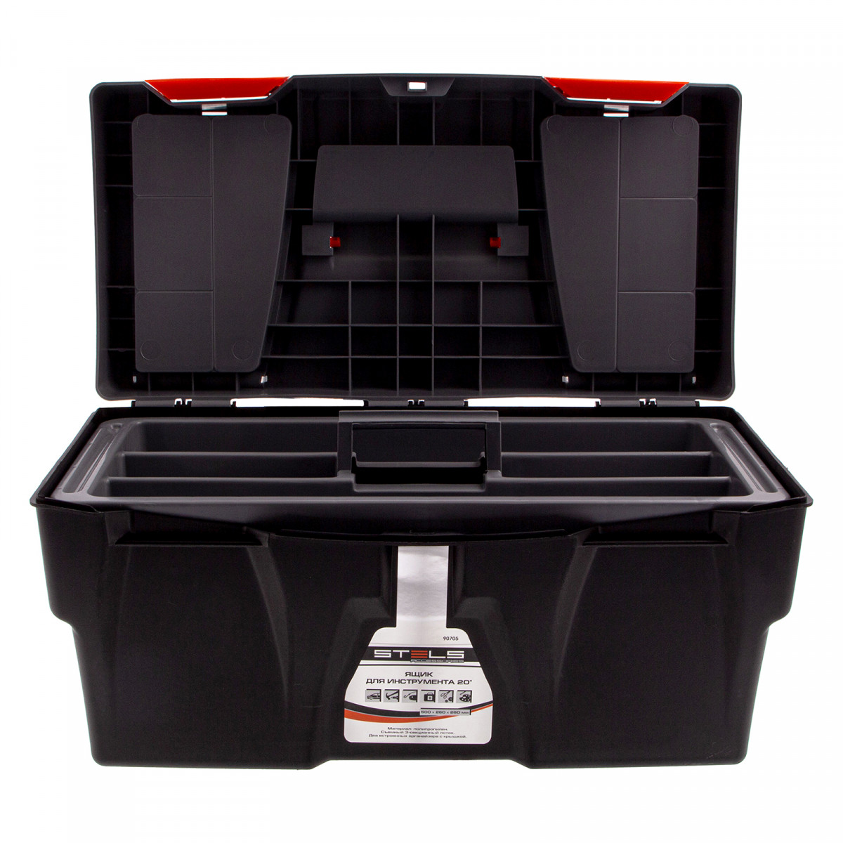 Ящик для инструмента Stels 90705, 20 дюймов, габаритами 500 х 260 х 260 мм, из пластика, предназначен для переноски и хранения инструментов, хозяйственных мелочей, рыболовных снастей. Содержимое не рассыпется, поскольку он надежно закрывается. Встроенные в крышку отделения обеспечивают быстрый доступ к крепежам и другим необходимым предметам. Большой ящик для хранения инструментов будет полезен дома, на даче, в гараже и на рыбалке.