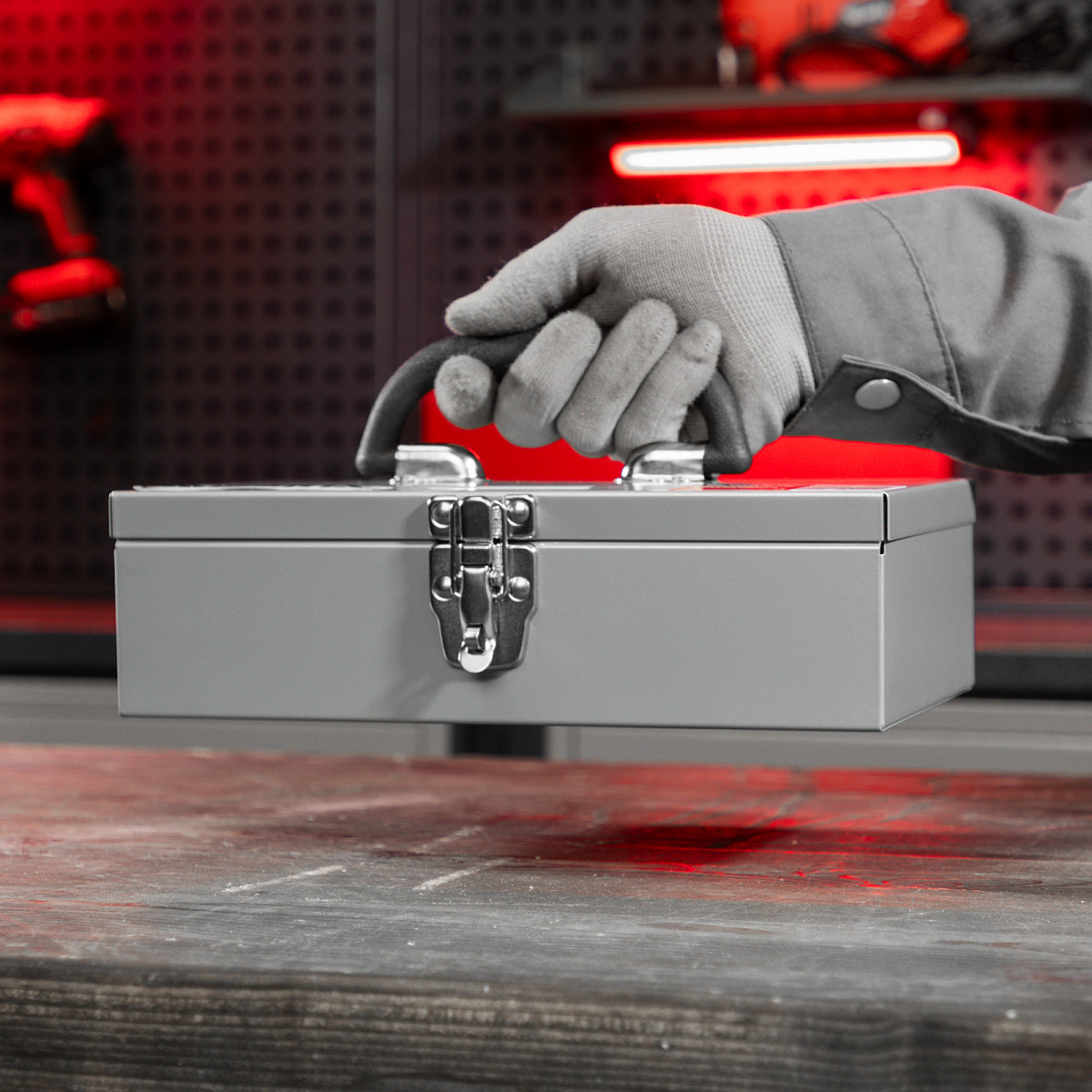 Прочный металлический корпус обеспечивает надежную защиту содержимого.