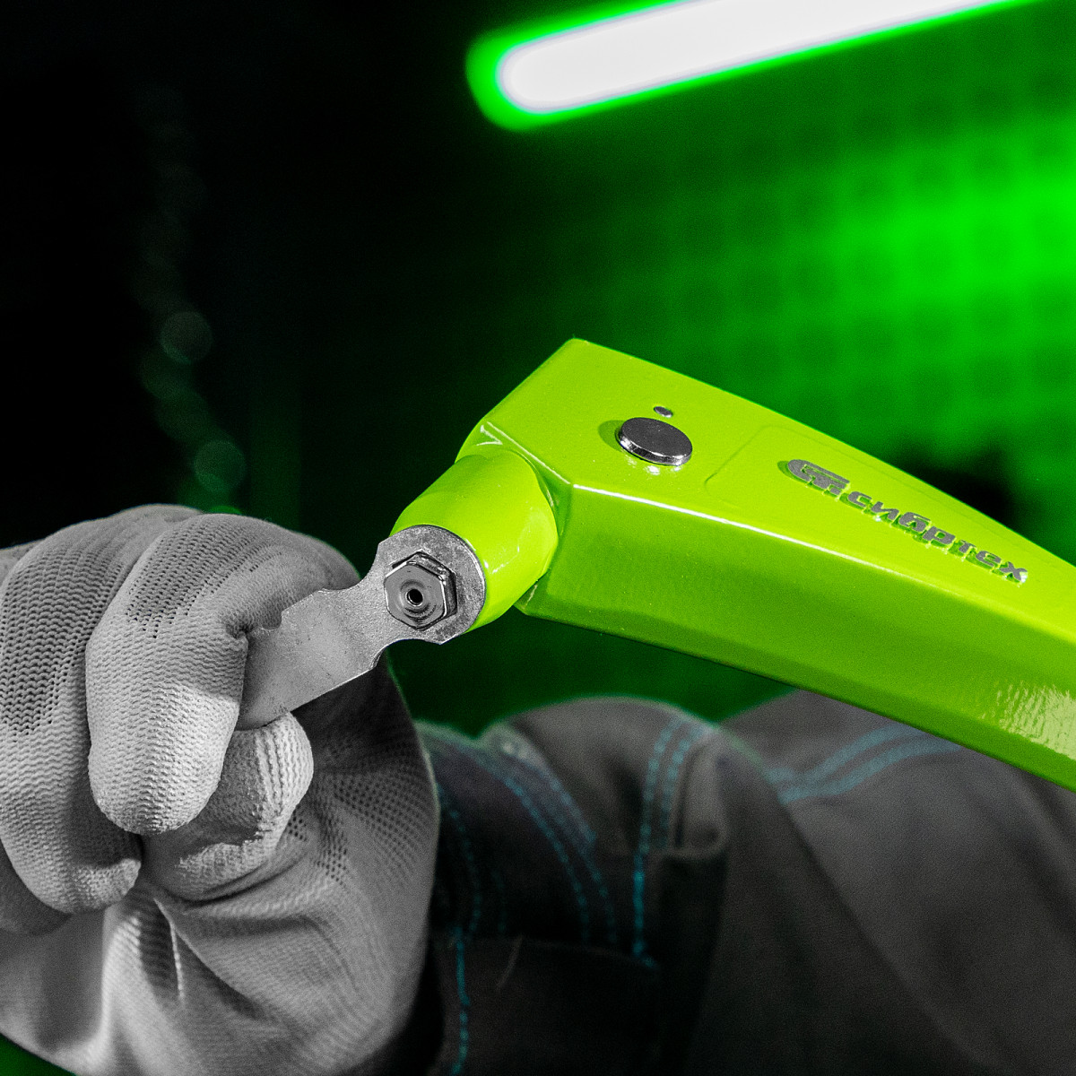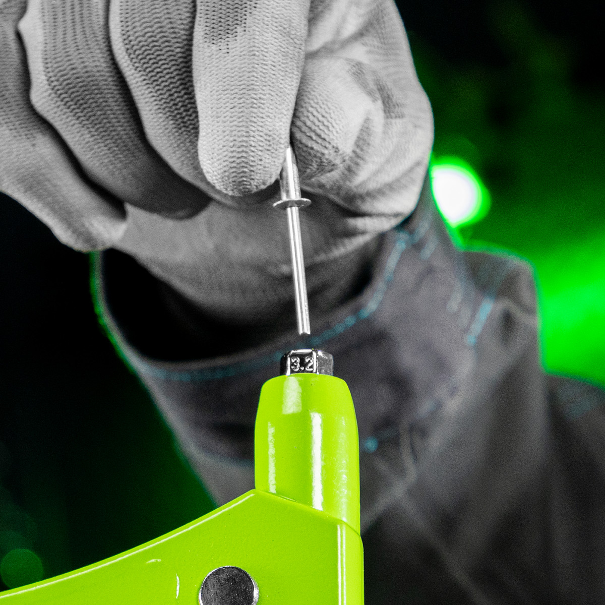 Литой корпус из алюминиевого сплава обеспечивает надежность и долговечность заклепочника.