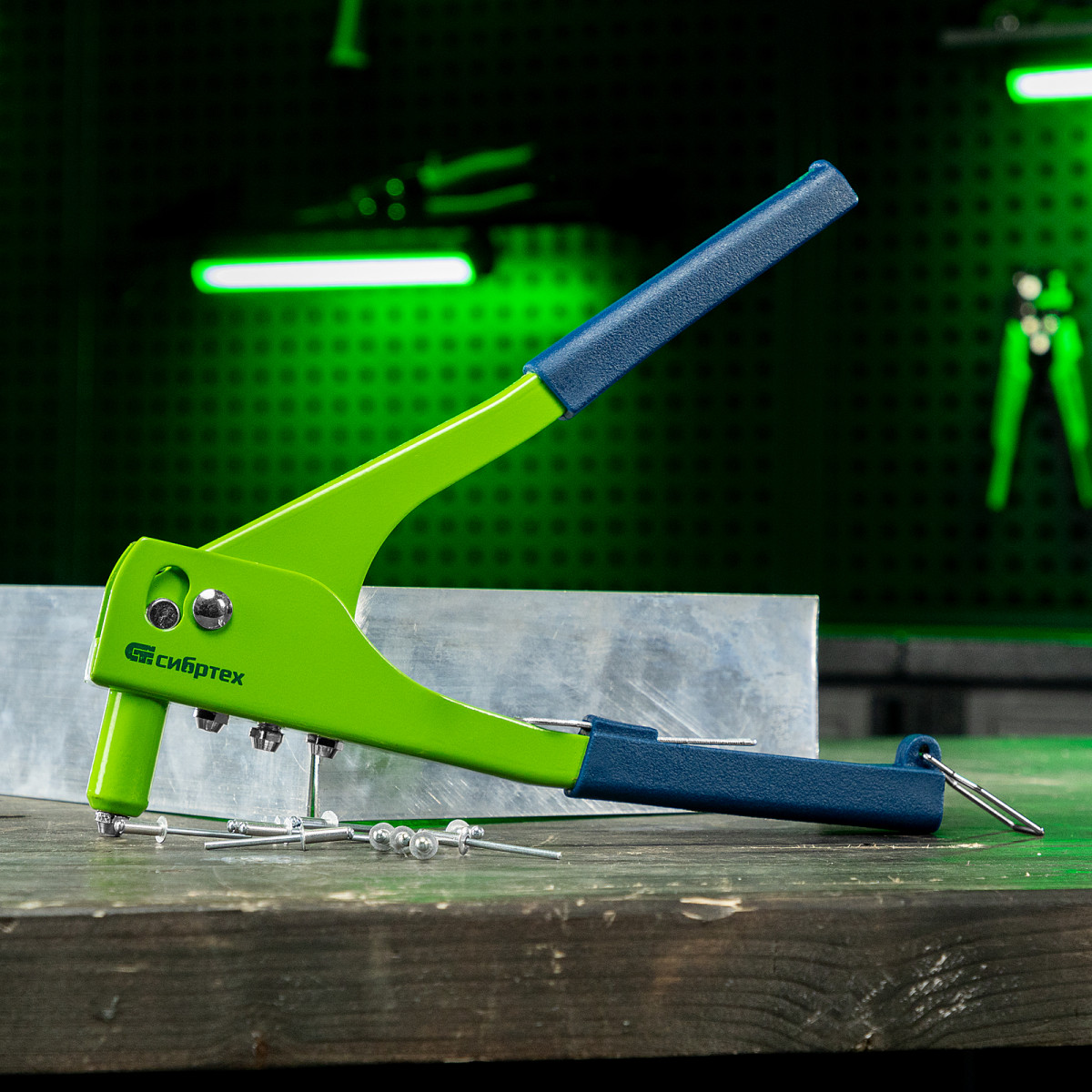 Заклепочник Сибртех 40541, 260 мм, рассчитан на скрепление листовых металлических заготовок при помощи вытяжных заклепок 2,4-3,2-4,0-4,8 мм. Он обеспечивает быстрое и прочное соединение материалов. Заклепочник предназначен для непрофессионального применения, пригодится при проведении строительных и ремонтных работ.