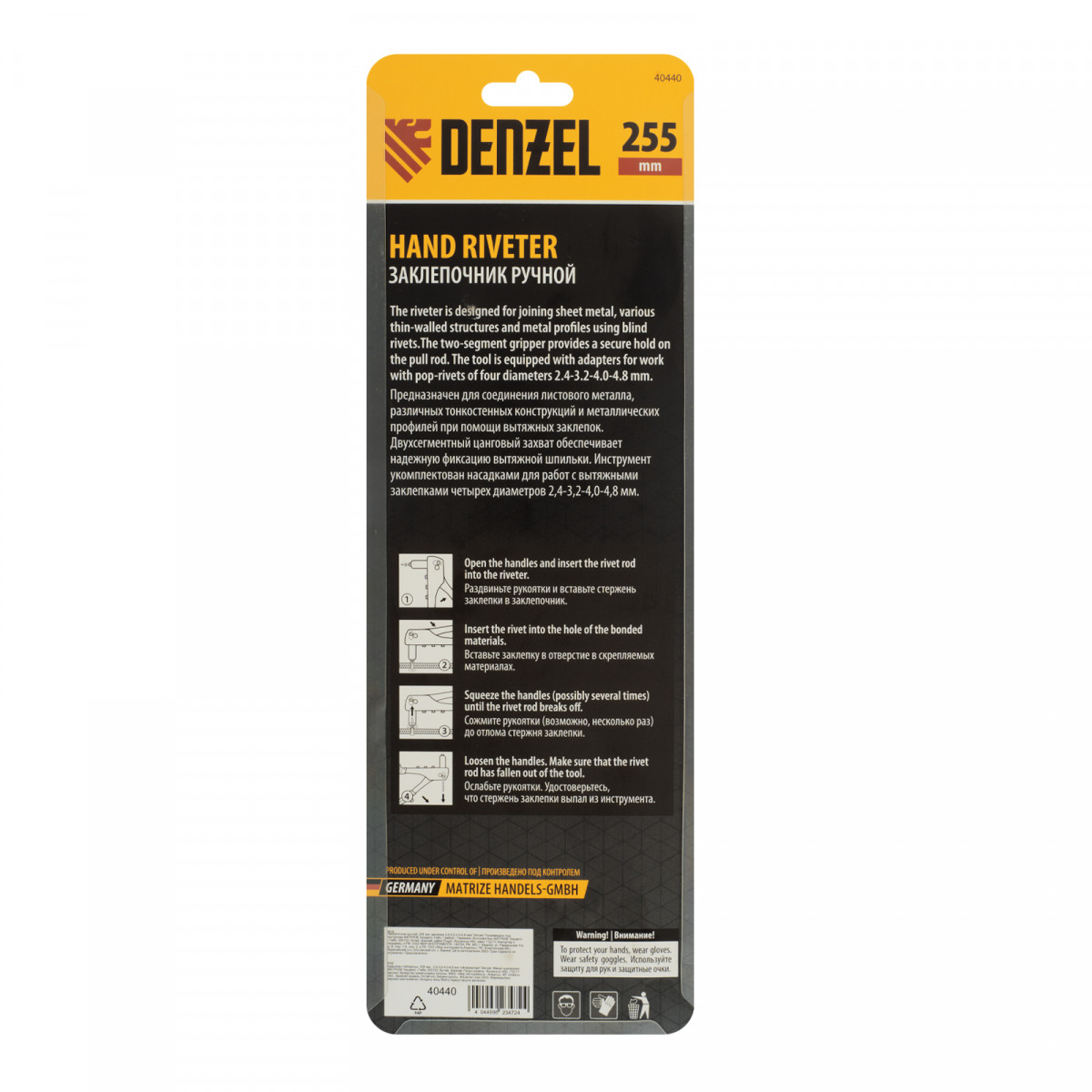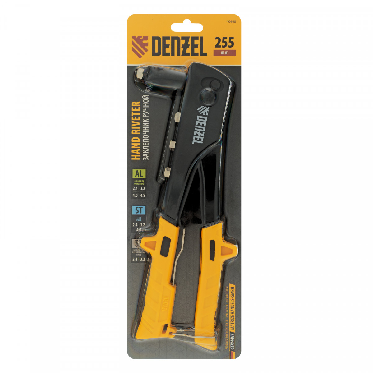 Заклепочник ручной, 255 мм, заклепки 2,4-3,2-4,0-4,8 мм Denzel
