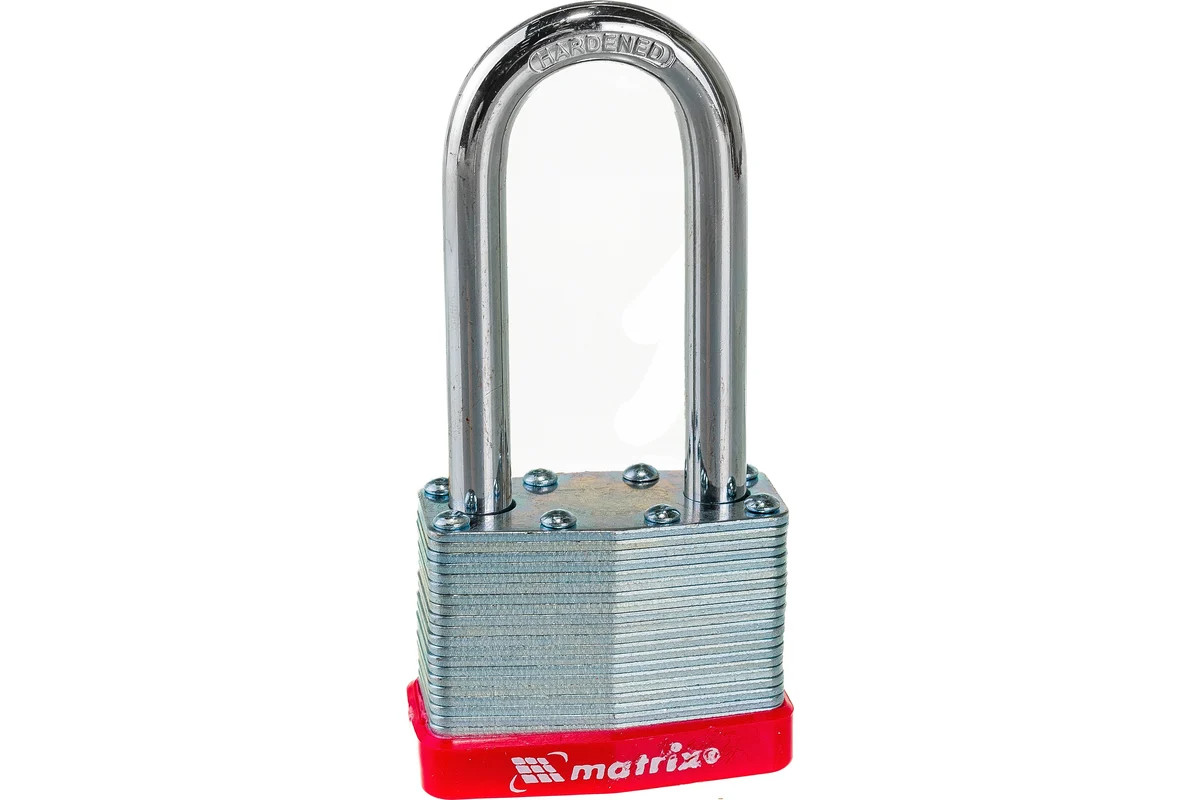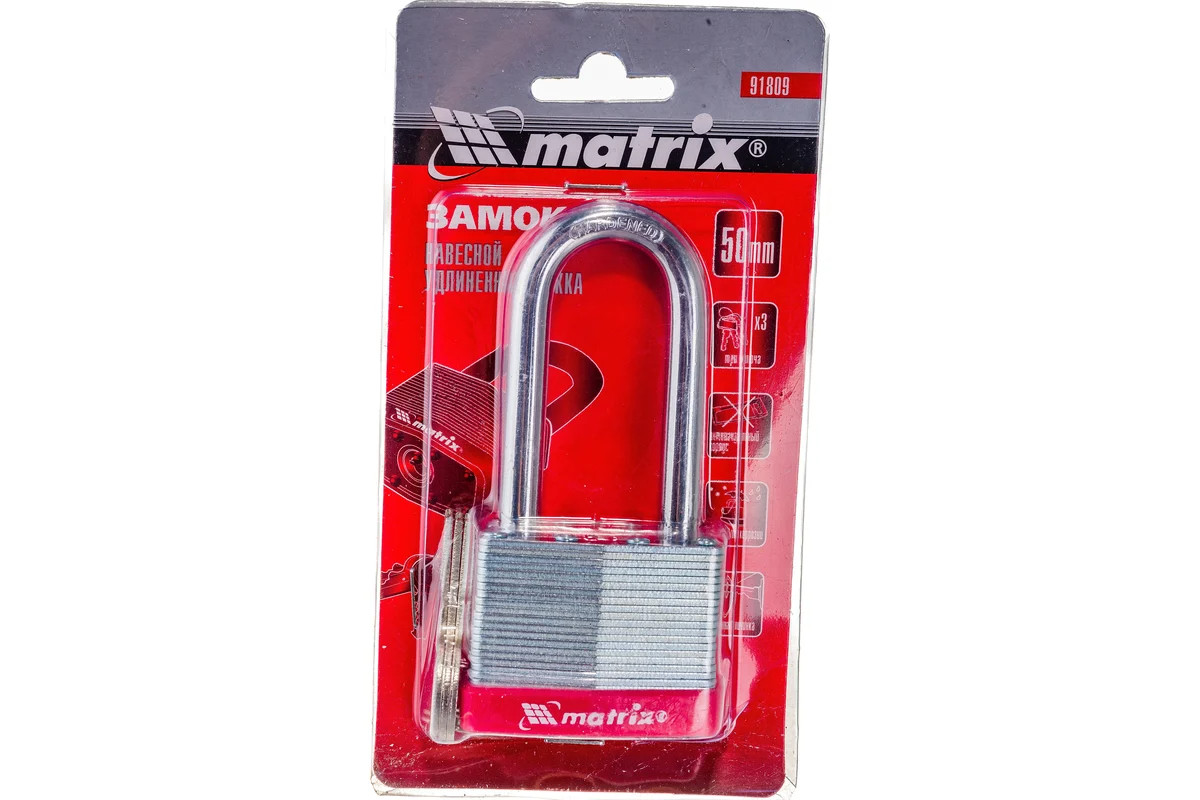 Навесной всепогодный замок MATRIX 50 мм удлиненная дужка 91826 обладает прочным обрезиненным корпусом. Изделие имеет стальные дужку и засов. Герметизация корпуса и дужки замка, минимальный размер зазоров между деталями, специальная крышка на ключевой блок делают конструкцию стойкой к воздействию атмосферных осадков. В комплекте три ключа
