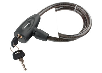 Замок тросовый предназначен для обеспечения сохранности велосипедов, детских колясок, санок, мототехники и т.д., а так же для запирания хозяйственных помещений. Длина троса 650 мм. Гибкий стальной трос в защитной пластиковой оболочке, диаметром 10мм. Материал секретного механизма (личинки) - латунь. Автоматическое запирание. В комплекте два стальных ключа.