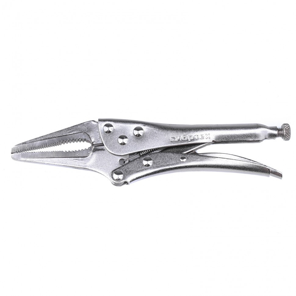 Зажим ручной Сибртех 18424 с удлиненным захватом, 220 мм, используется для проведения слесарных, столярных, монтажных, сварочных работ. Он удерживает разные по форме заготовки и детали, при этом руки мастера остаются свободными для дальнейших действий. Удлиненный захват обеспечивает надежную фиксацию. Инструмент пригодится на строительной площадке, во время ремонта, а также дома, в мастерской или гараже.