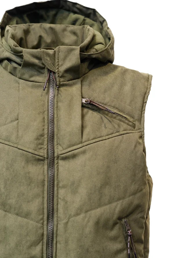Жилет среднего объёма из комбинированных по цвету тканей - из плотной мембранной ткани Финляндия HI-TEX - ткани нового поколения